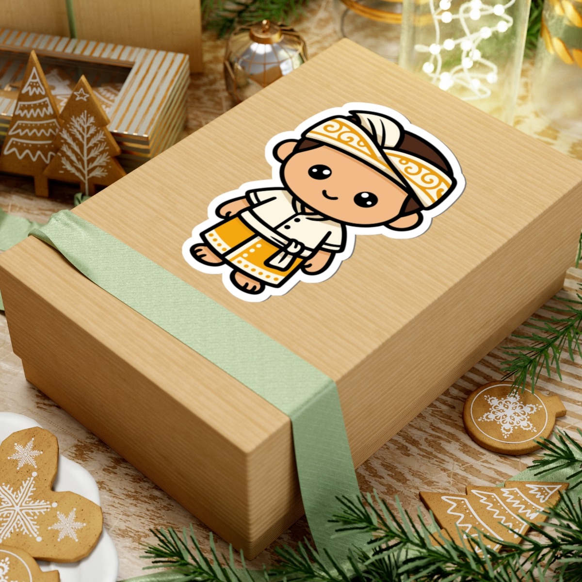 Steeped in culture and island spirit, this Balinese boy in traditional attire brings warm smiles and ceremonial grace to your sticker collection!