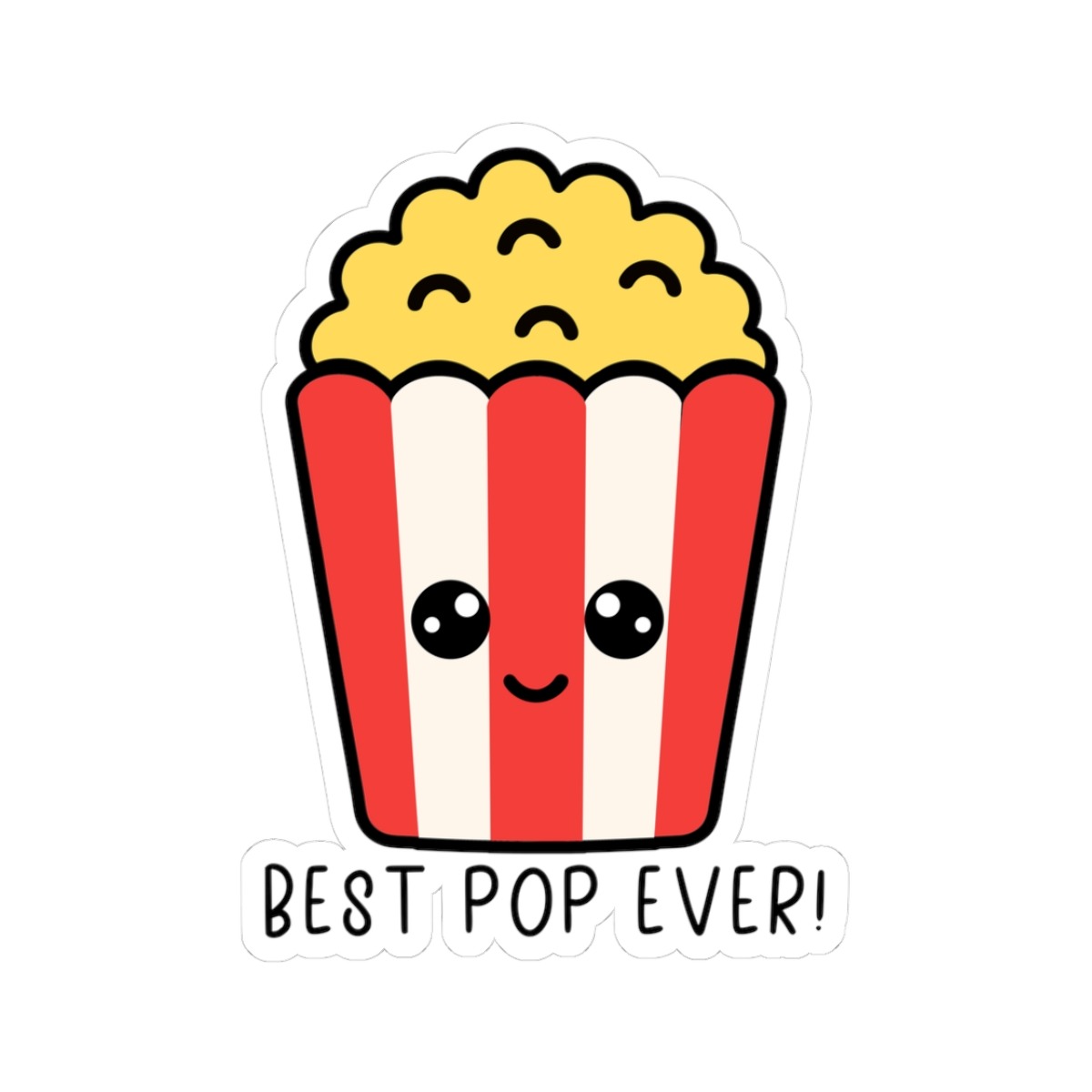 Design appeal: Featuring a cheerful popcorn bucket with a kawaii-style smile, this sticker is the perfect mix of cute and fun — just like your favorite movie snack!