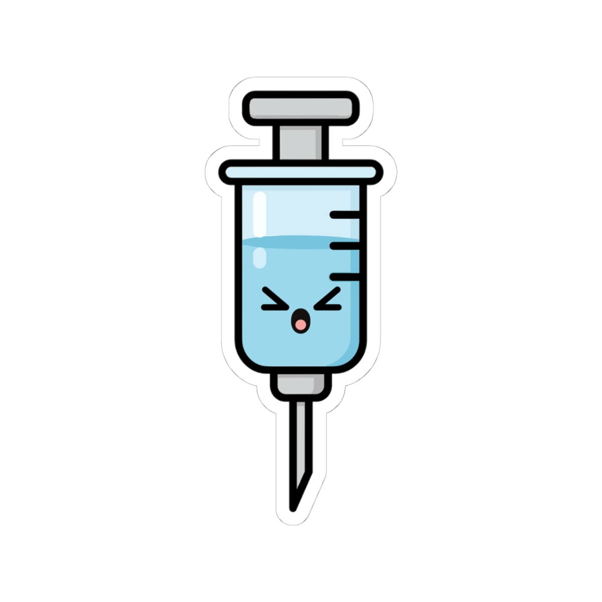 Design appeal: Featuring a kawaii-style syringe with a sad expression, this sticker adds a fun and emotional touch to your items.