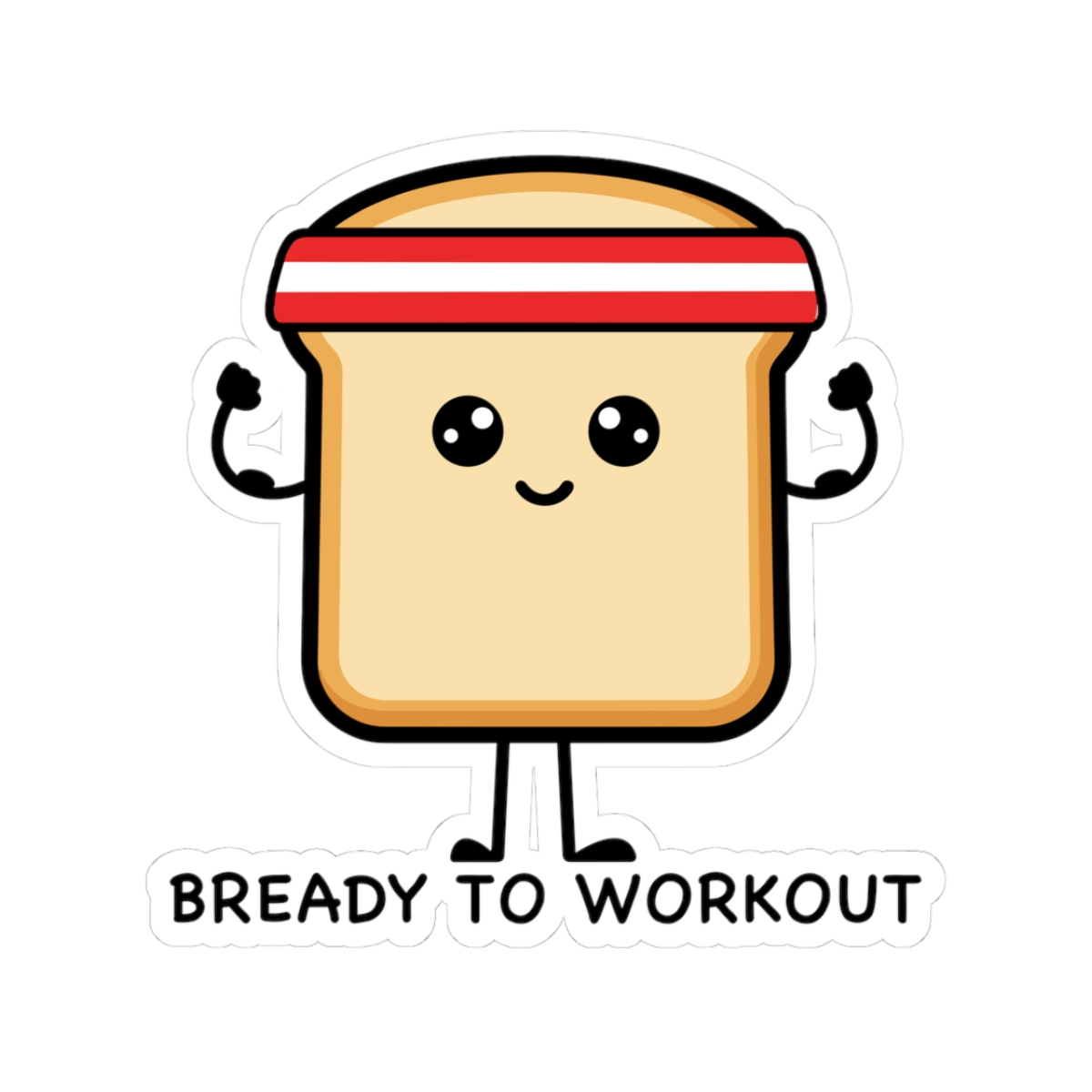 Bring a slice of motivation to your indoor essentials with our “Bready to Workout” Bread Sticker! Featuring a spirited loaf of bread ready to hit the gym, this playful design brings fitness humor and warm charm to laptops, journals, planners, or indoor water bottles.