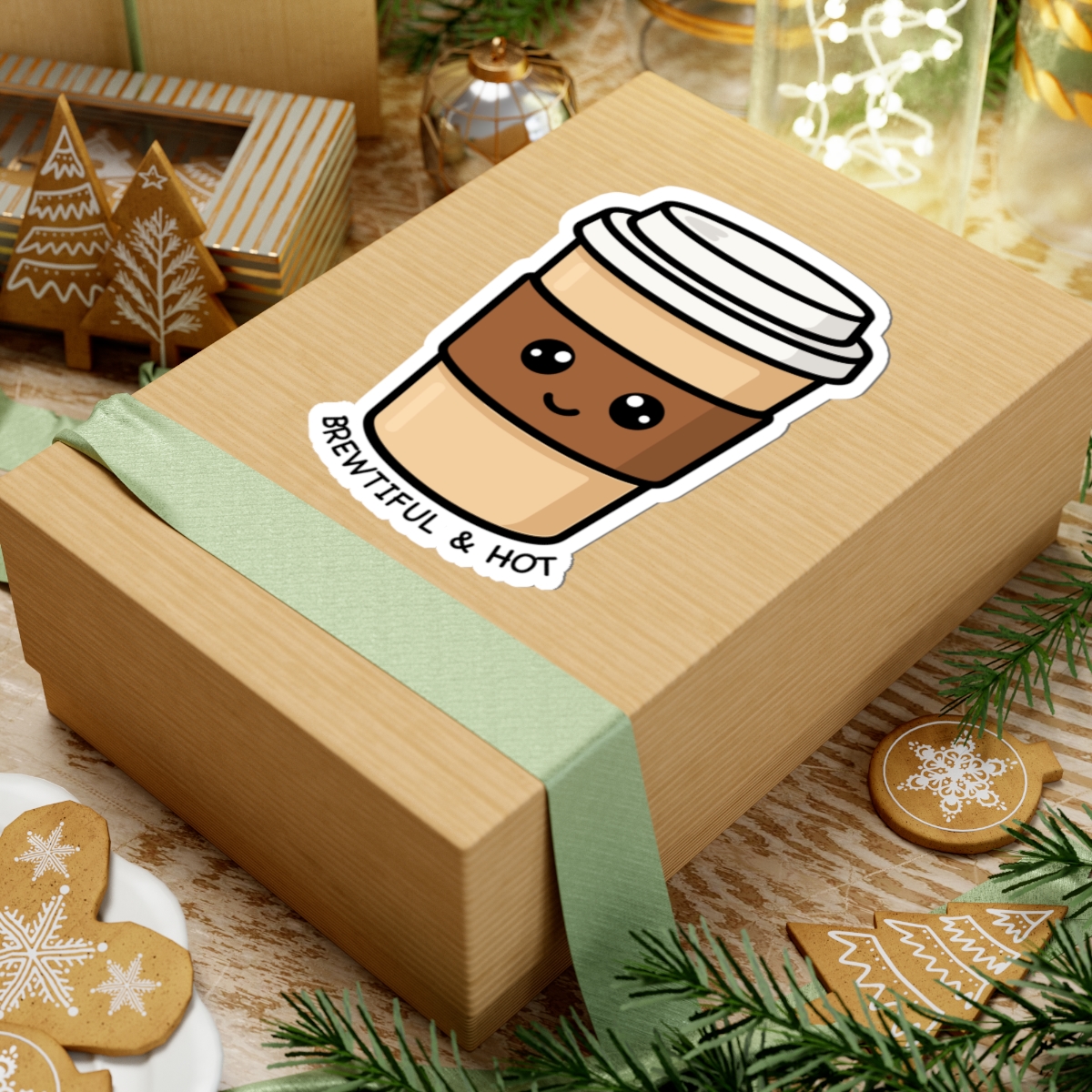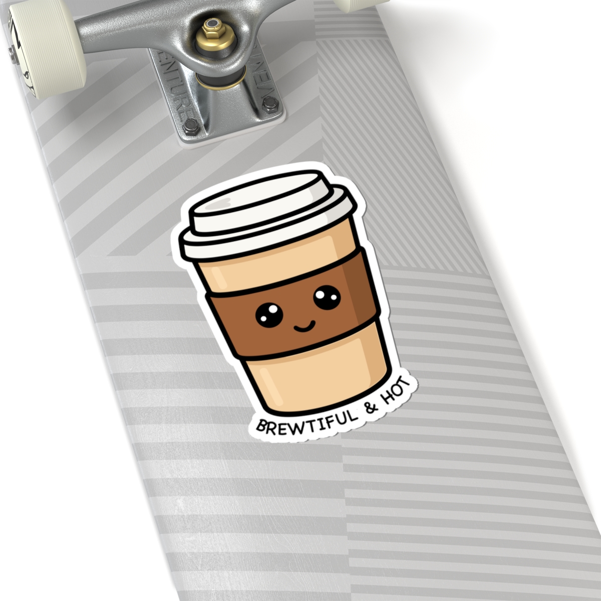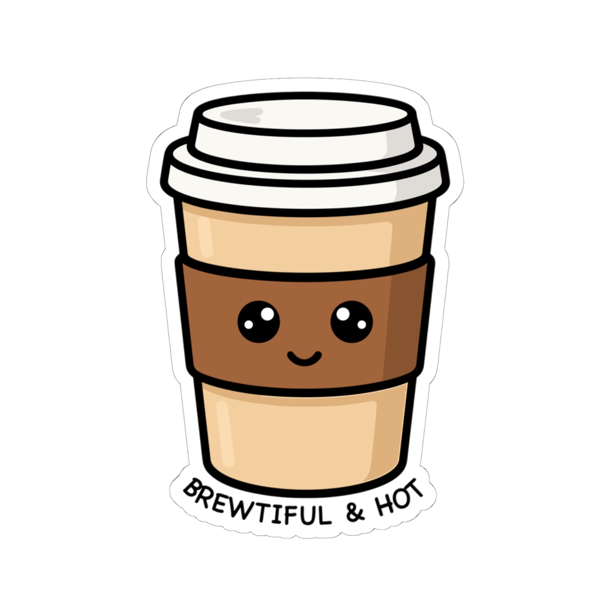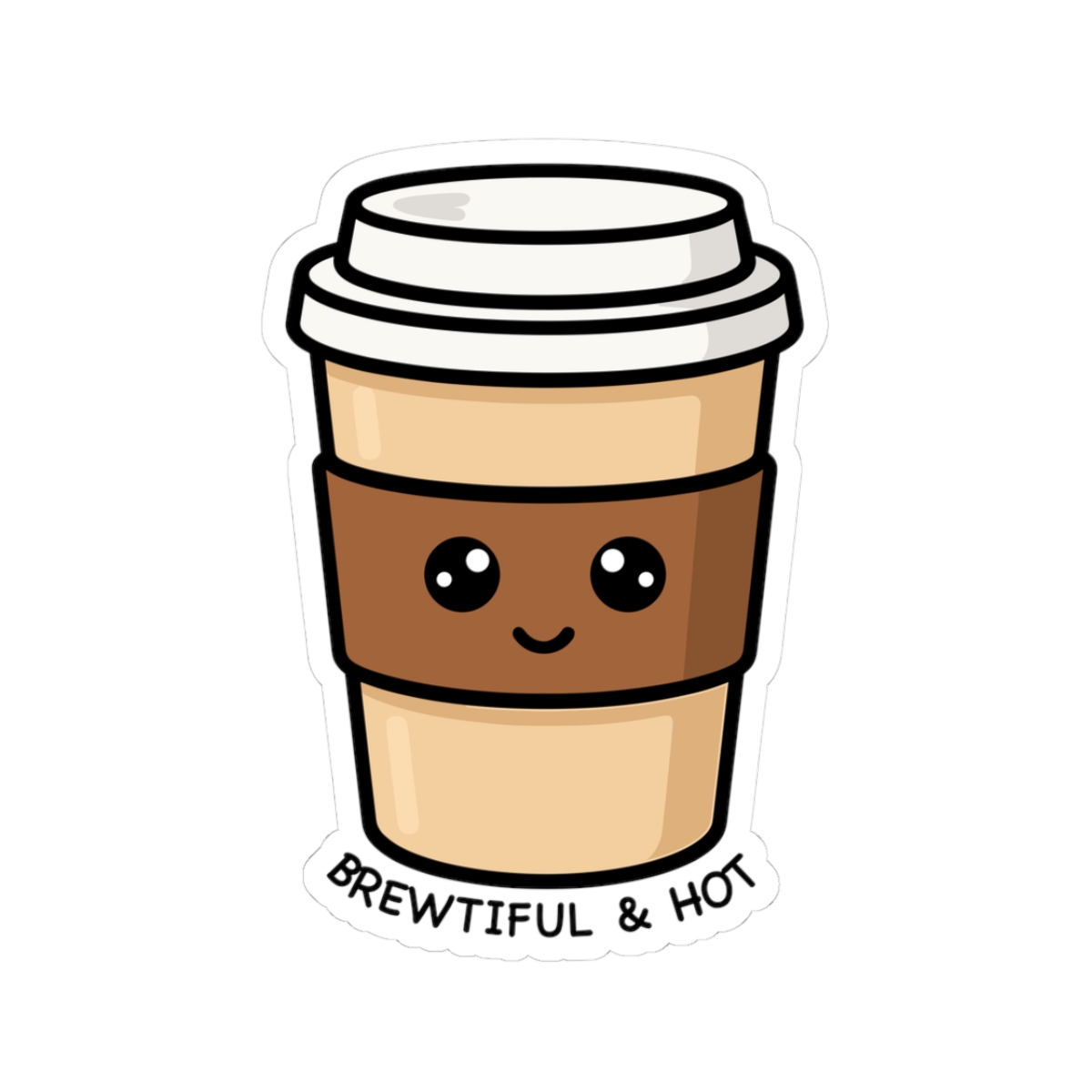 Design appeal: Featuring a kawaii-style coffee cup with a cheerful expression and the playful message “Brewtiful & Hot,” this sticker adds a fun and loving touch to your items.
