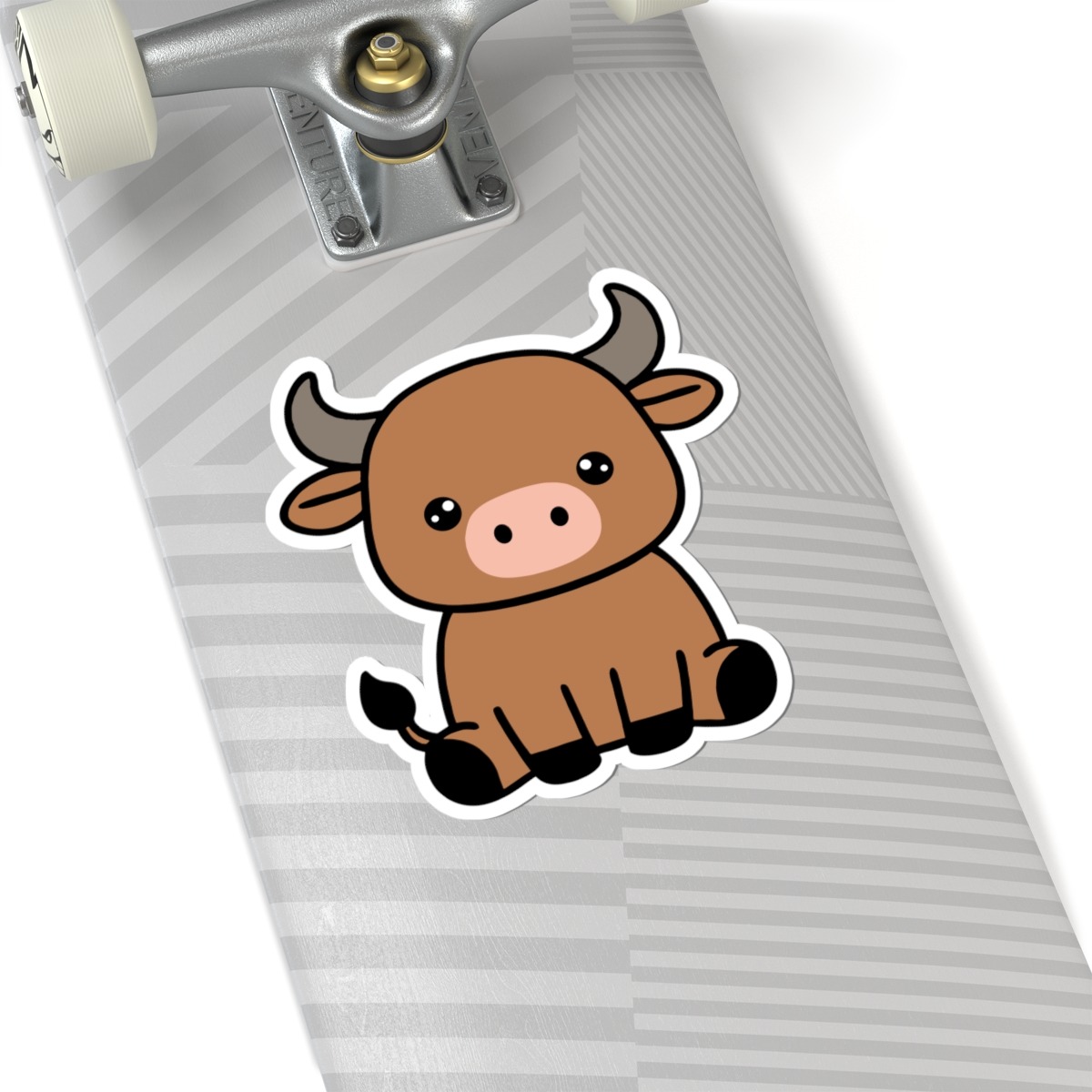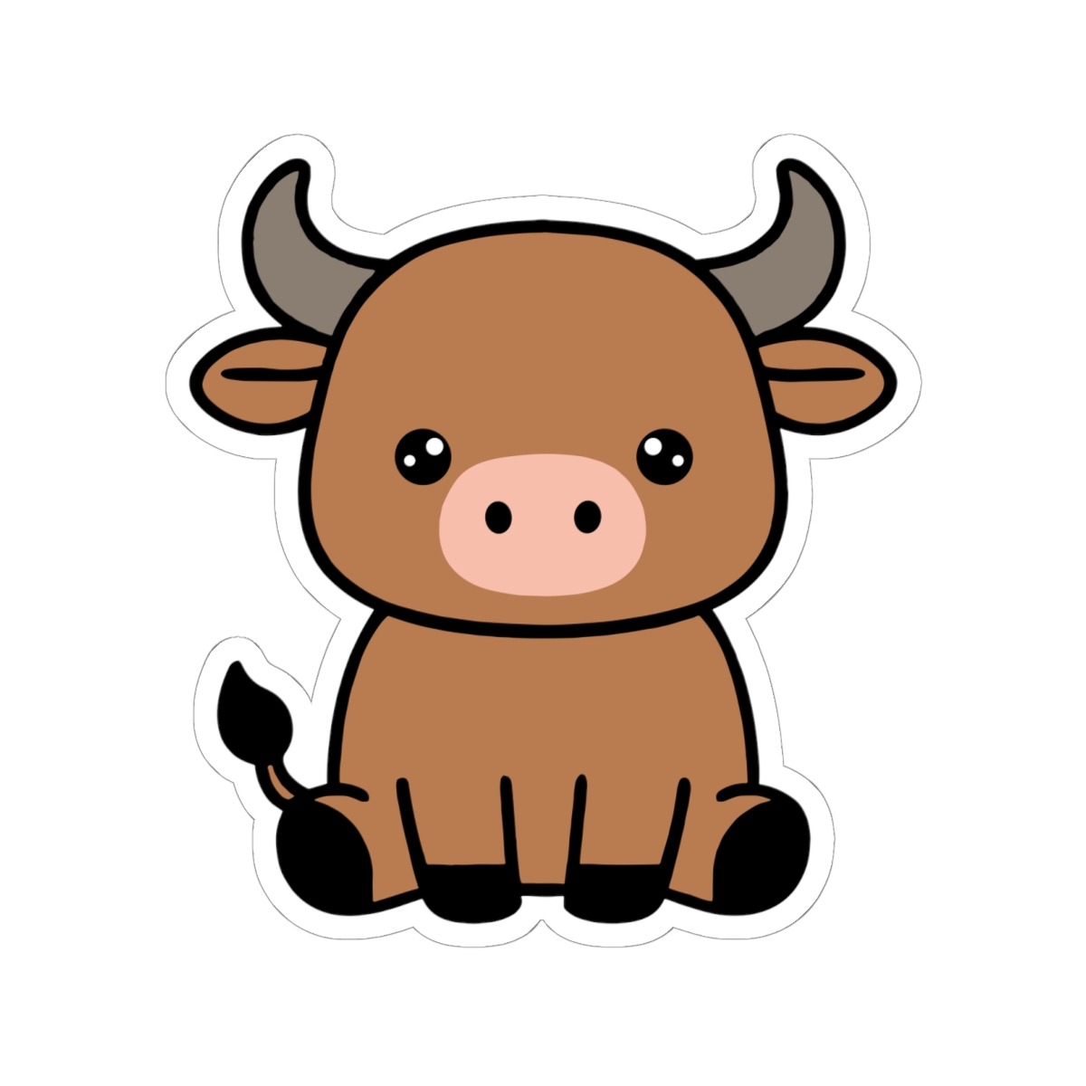 Design appeal: Features a kawaii-style bull with strong curved horns, bright brown fur, big sparkling eyes, and a cheeky grin, radiating pure strength and playful attitude in the cutest way.