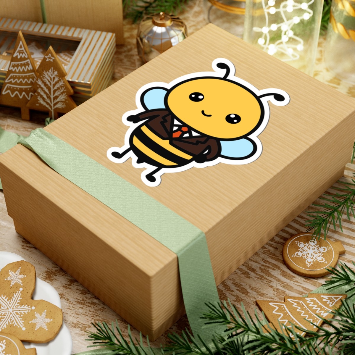 Design appeal: Features an adorable kawaii-style bumble bee wearing a tiny suit and red tie, with bright eyes and a confident grin, plus the pun “Buzz-ness Man” in playful lettering — it’s all business and all cute!