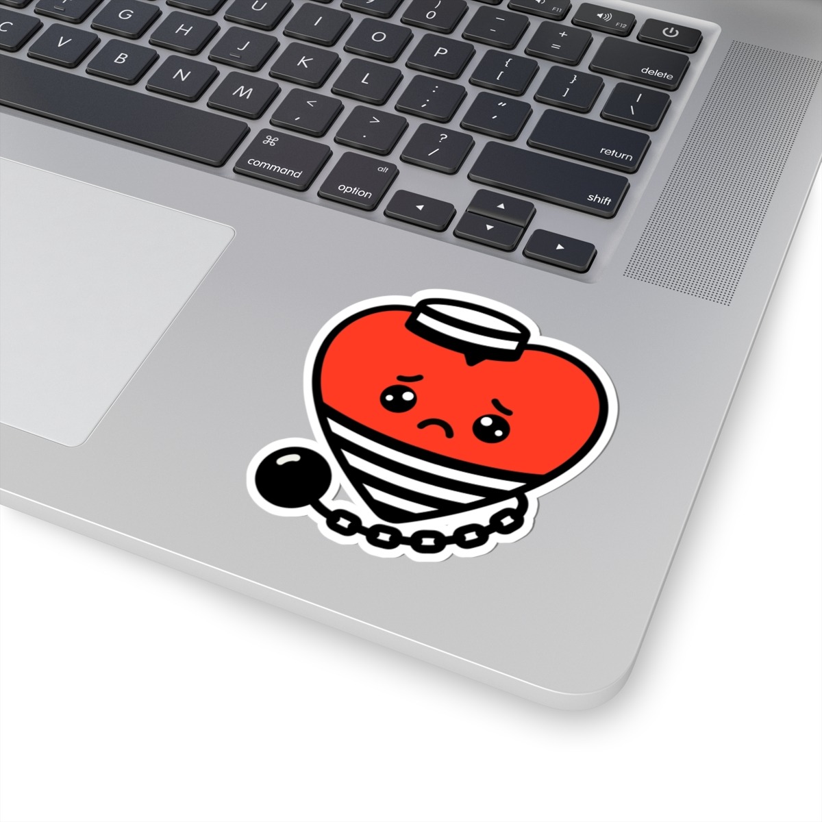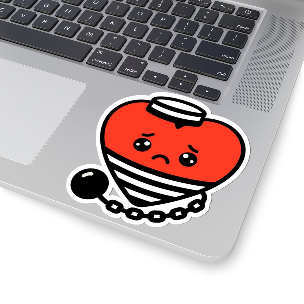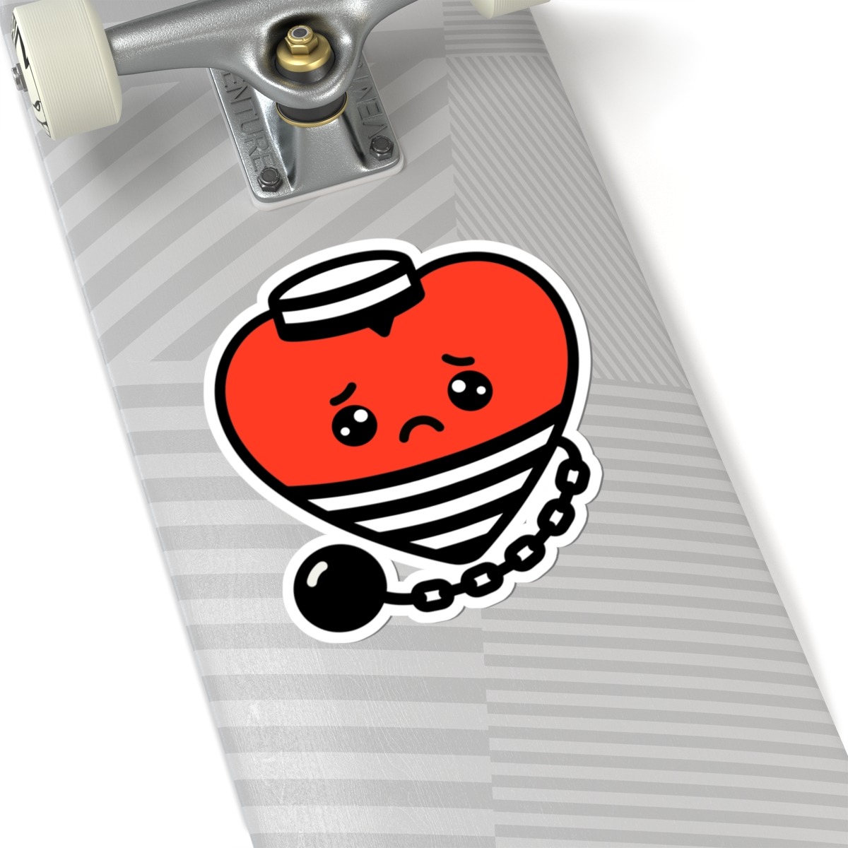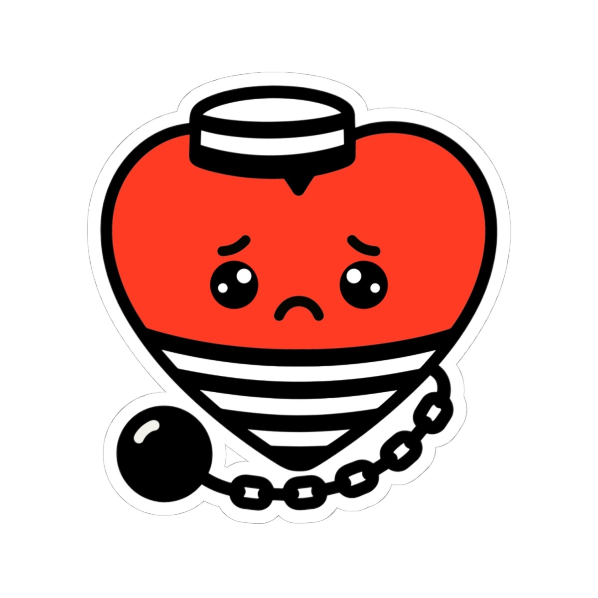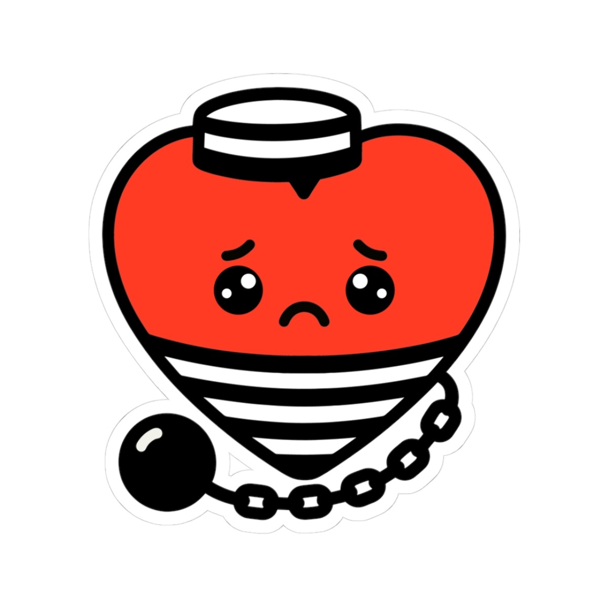 Design Appeal – Featuring a smiling red heart wearing a classic black-and-white striped prisoner outfit and hat, complete with a ball and chain attached, it’s a clever pun brought to life with irresistible humor and charm.