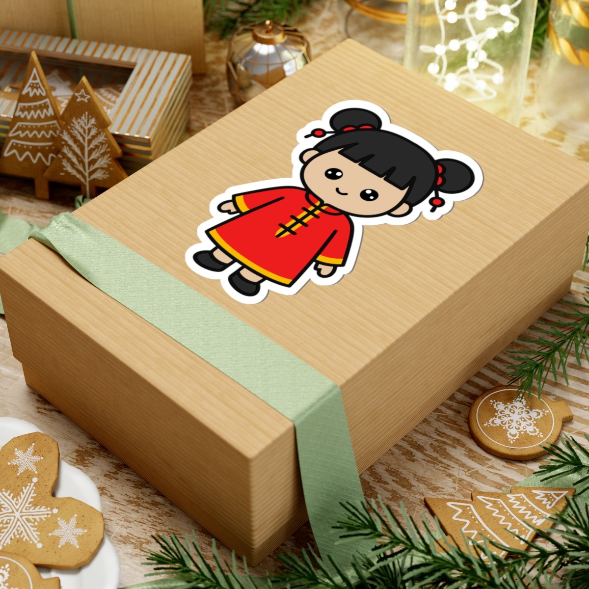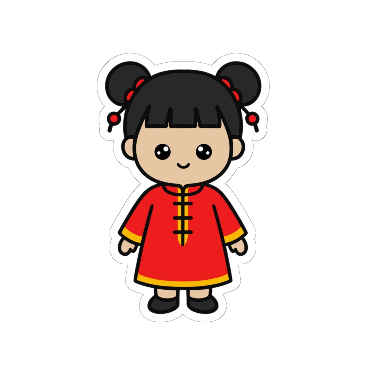 Graceful and full of joy, this Chinese girl in traditional attire brings elegance, color, and festive charm to your sticker collection with every sweet smile!