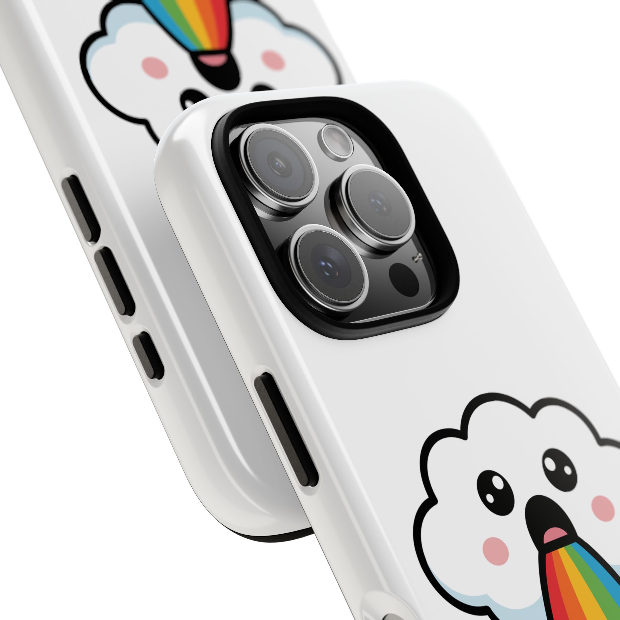 Whether you’re looking to add a quirky touch to your phone or searching for the perfect gift for a fun-loving friend, our Cloud Rainbow Barf Phone Case is sure to delight.