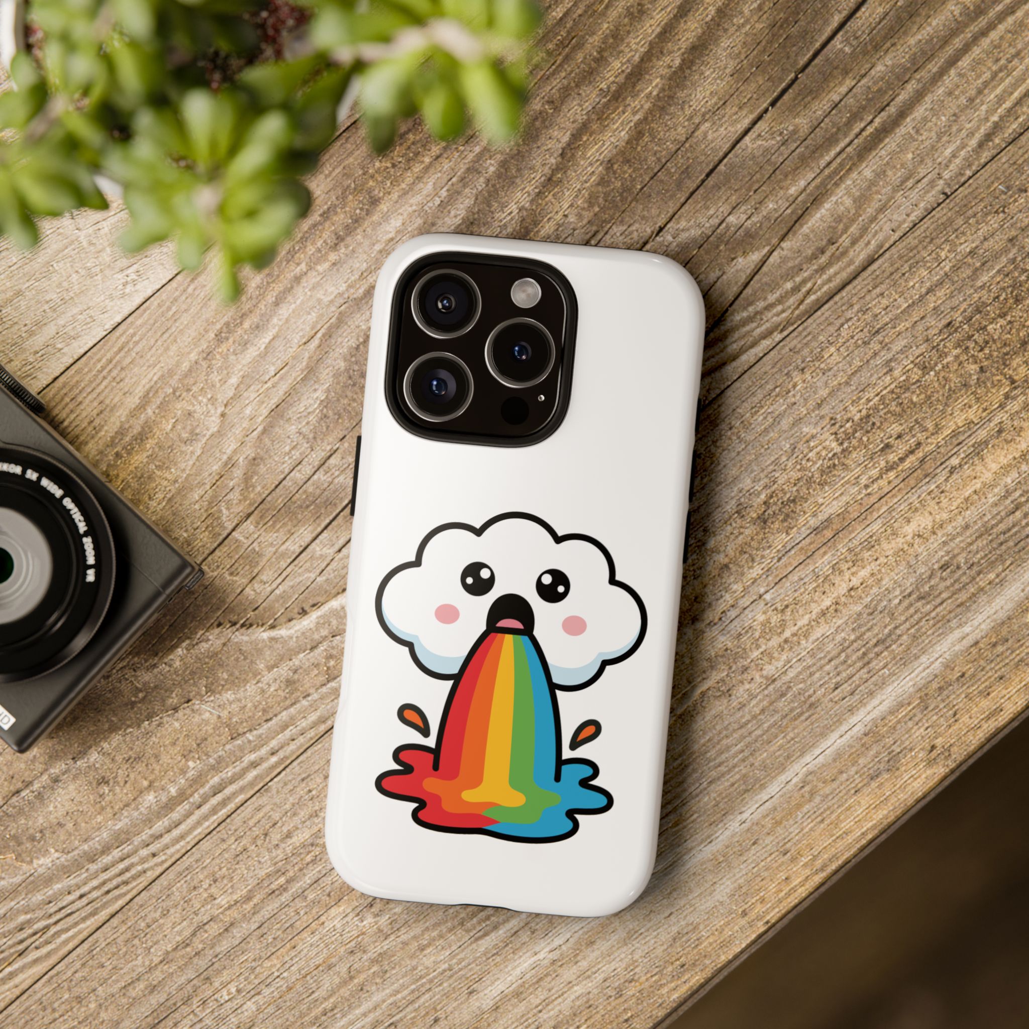 Brighten your day and protect your device with our delightful Cloud Rainbow Barf Phone Case! Featuring a charming design of a fluffy cloud playfully spewing a vibrant rainbow, this case adds a touch of humor and color to your everyday essentials.