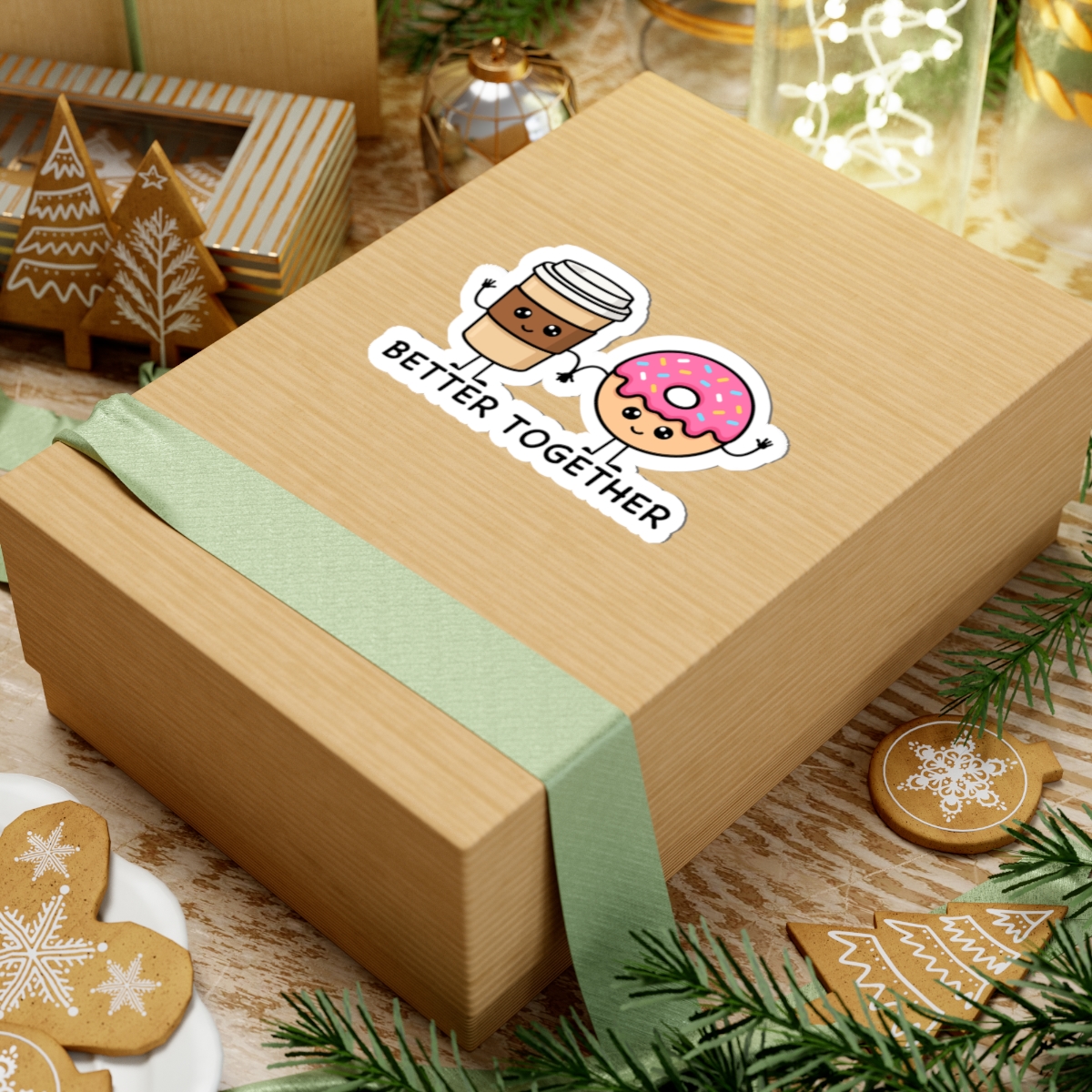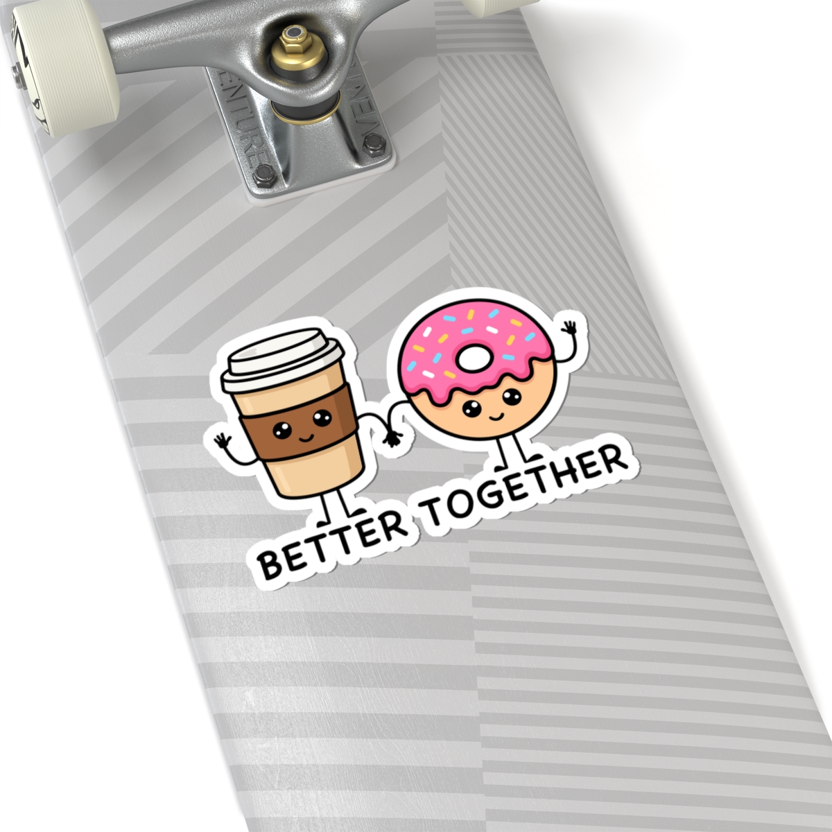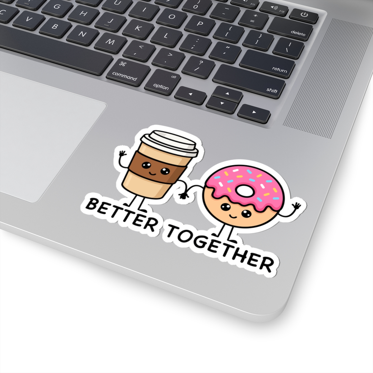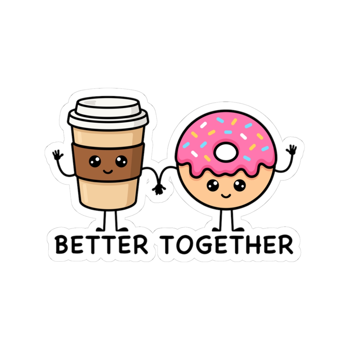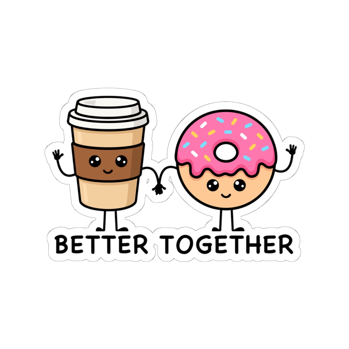 Bring joy to every morning (and beyond) with the “Coffee & Donut — Better Together” Sticker—order yours today and let the cozy vibes stick around!