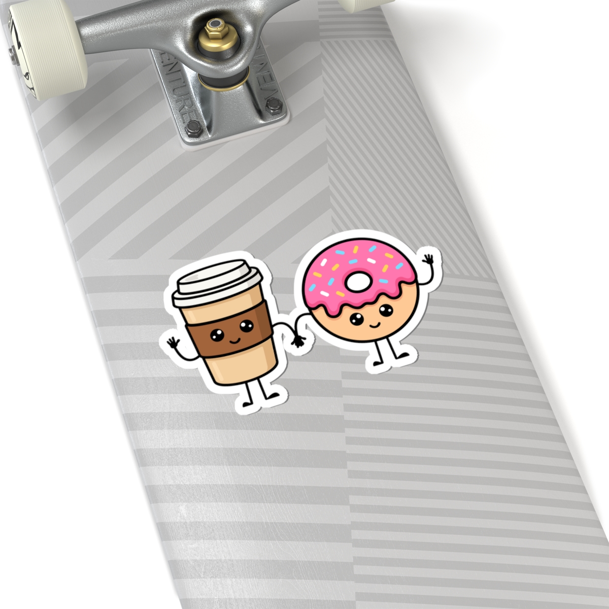 Brighten your everyday gear with our Coffee & Donut Sticker! Featuring a smiling cup of coffee and a cheerful sprinkled donut side-by-side, this sweet design brings cozy café vibes to your indoor world—perfect for laptops, journals, planners, or indoor water bottles.