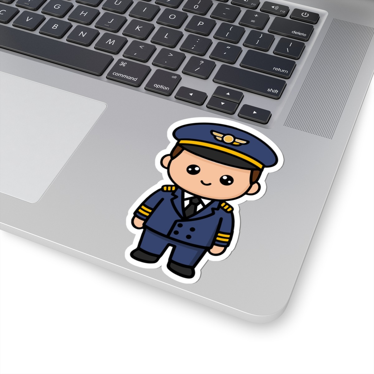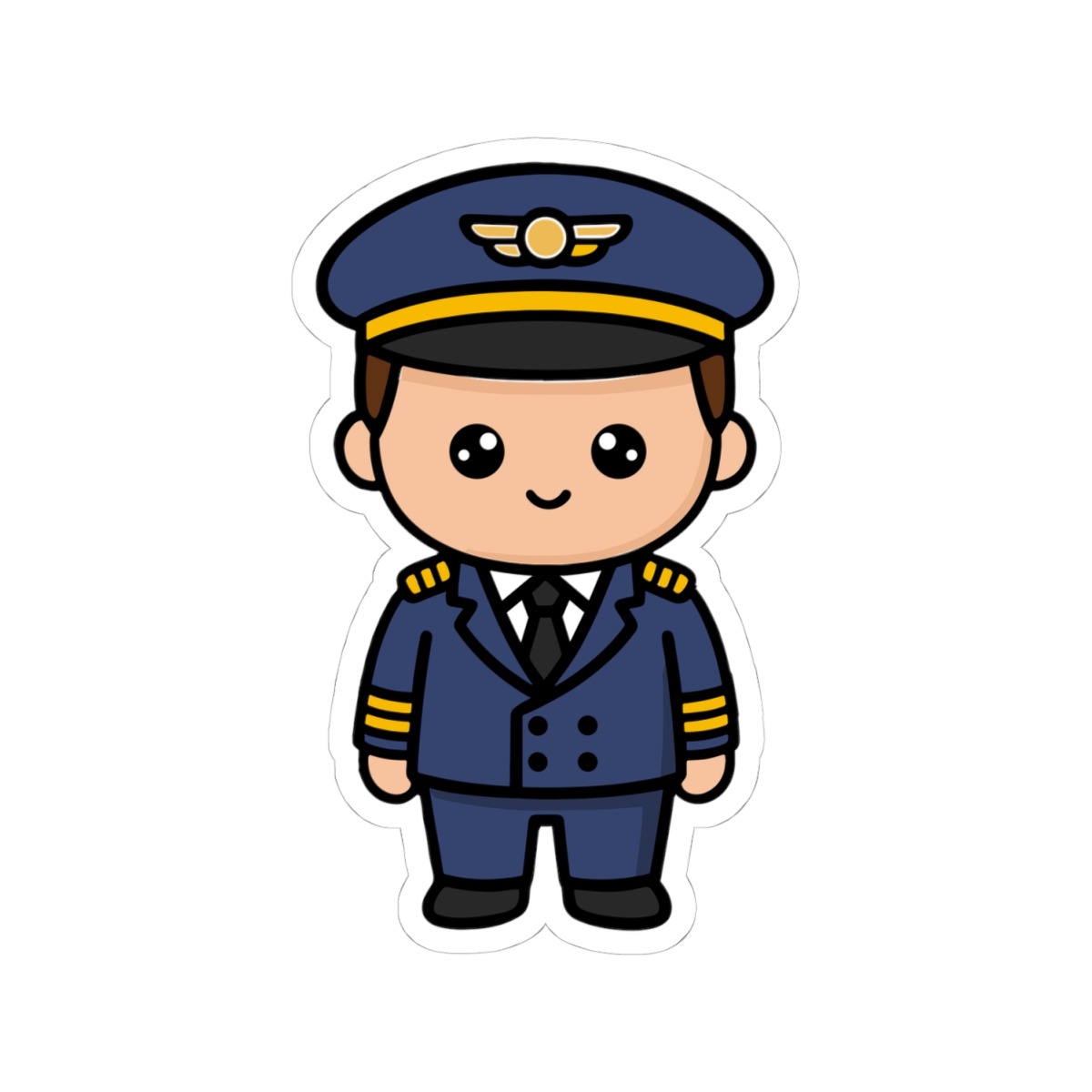 Polished and professional – Features a kawaii-style pilot in a crisp uniform with captain’s hat and golden wings.