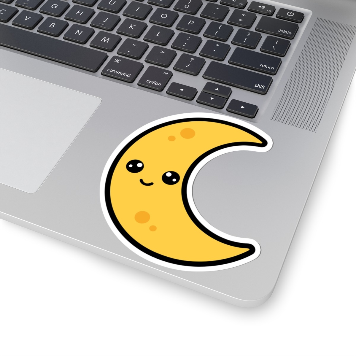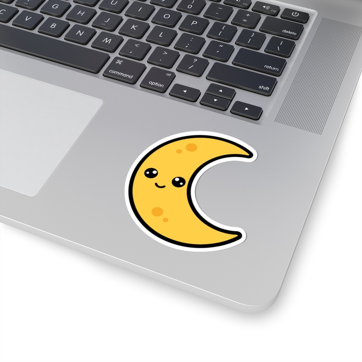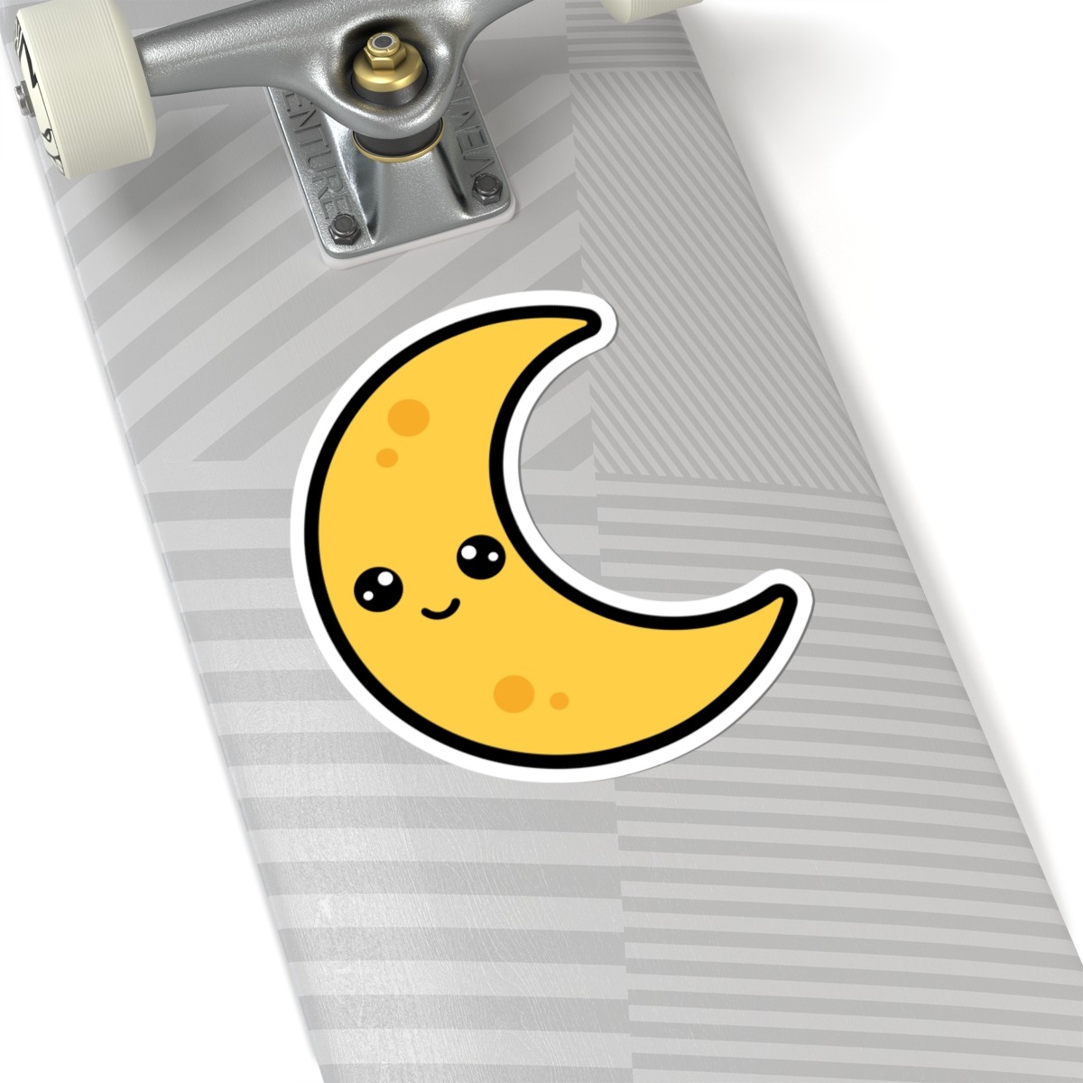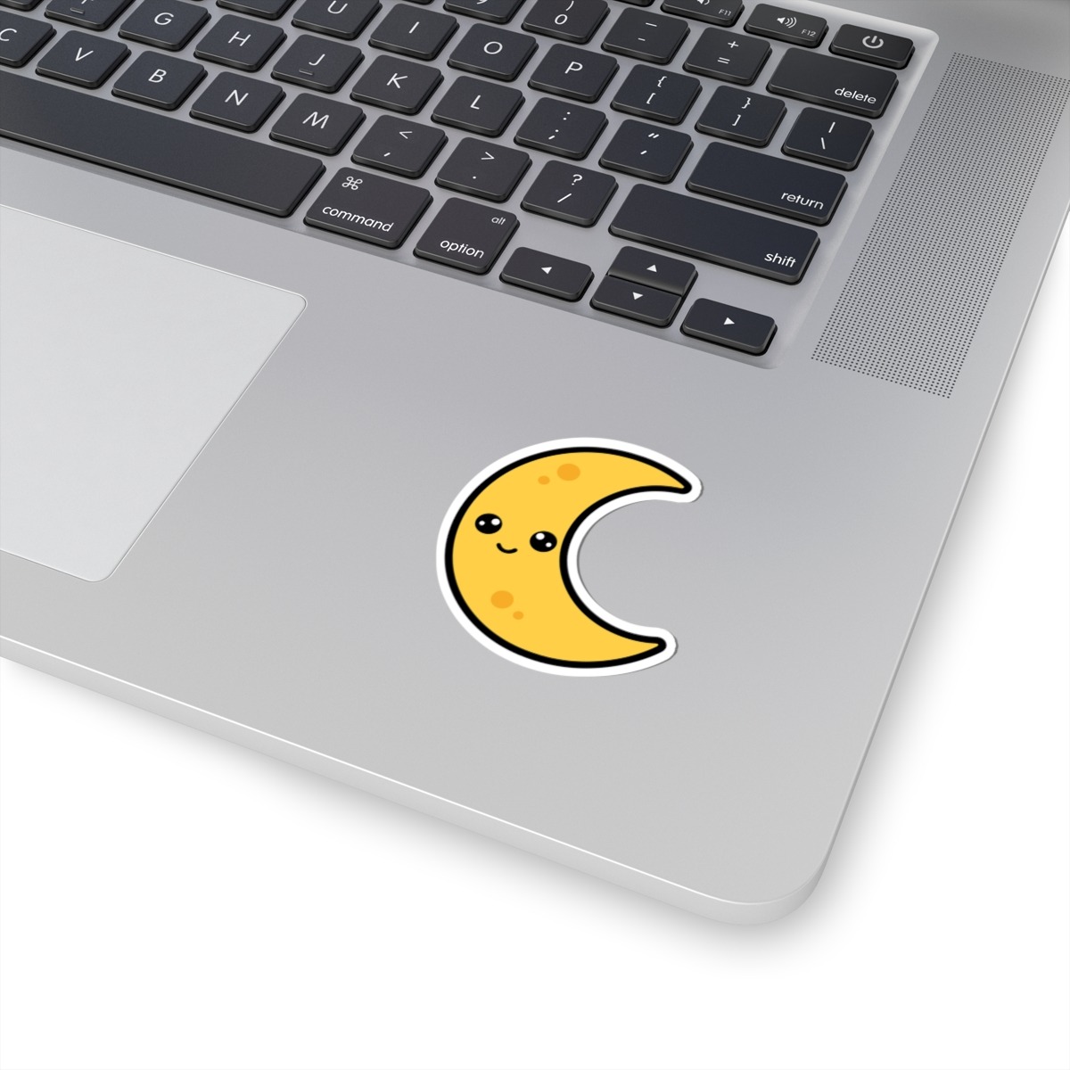 Brighten your indoor spaces with this adorable crescent moon sticker—it’s a serene slice of kawaii magic ready to glow on your favorite gear!