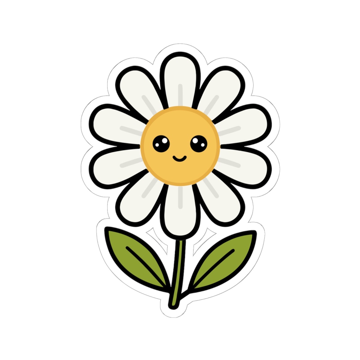 Design appeal: Features a kawaii-style white daisy with soft white petals, a sunny yellow center, big sparkling eyes, and a gentle smile, radiating pure freshness and natural beauty.