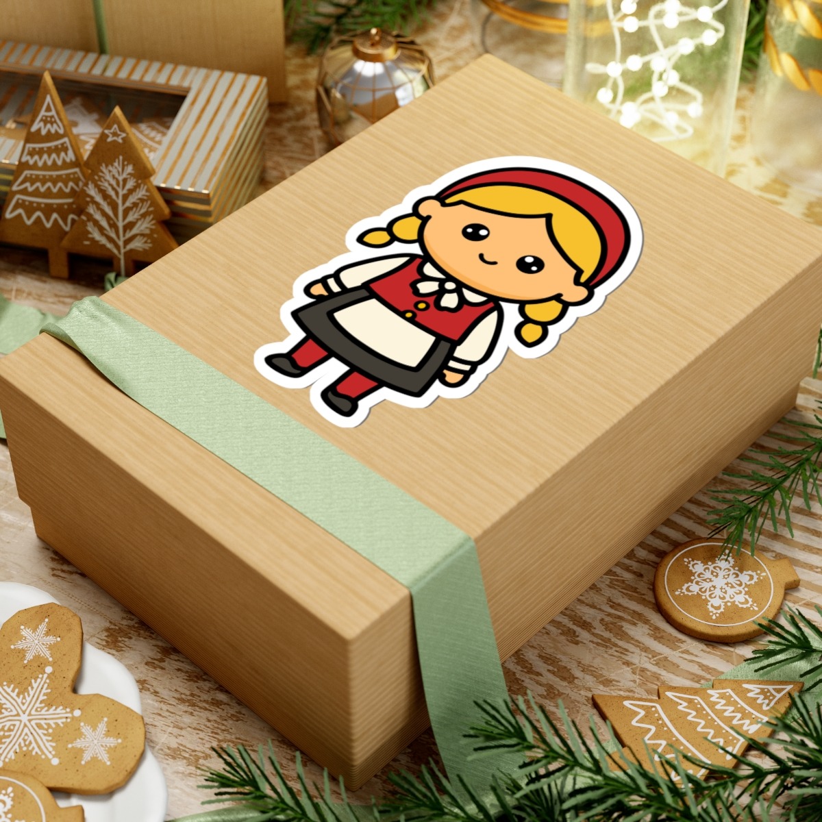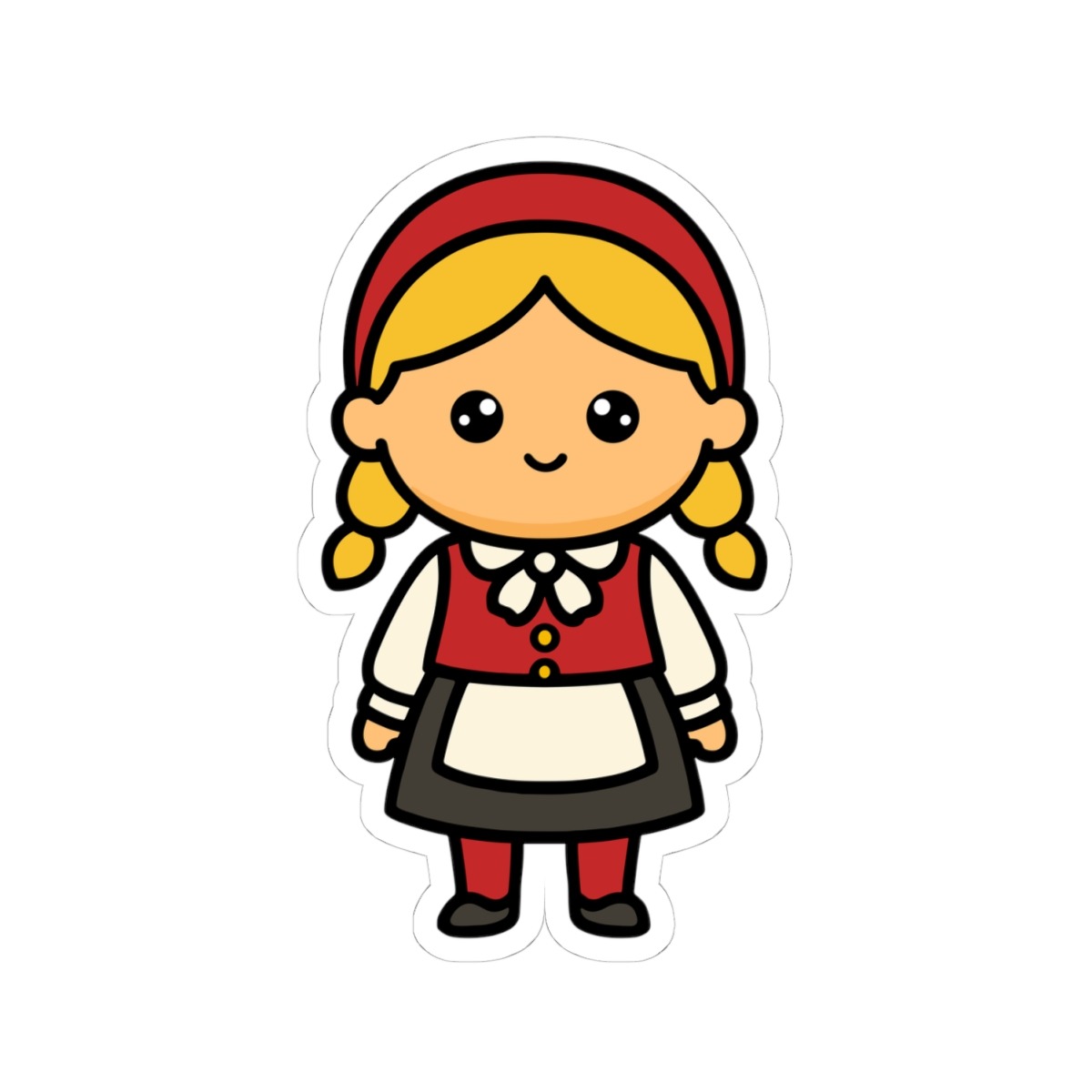 With timeless charm and cultural sparkle, this Danish girl in traditional attire brings folkloric elegance and joyful spirit to your sticker collection—straight from the heart of Scandinavia!