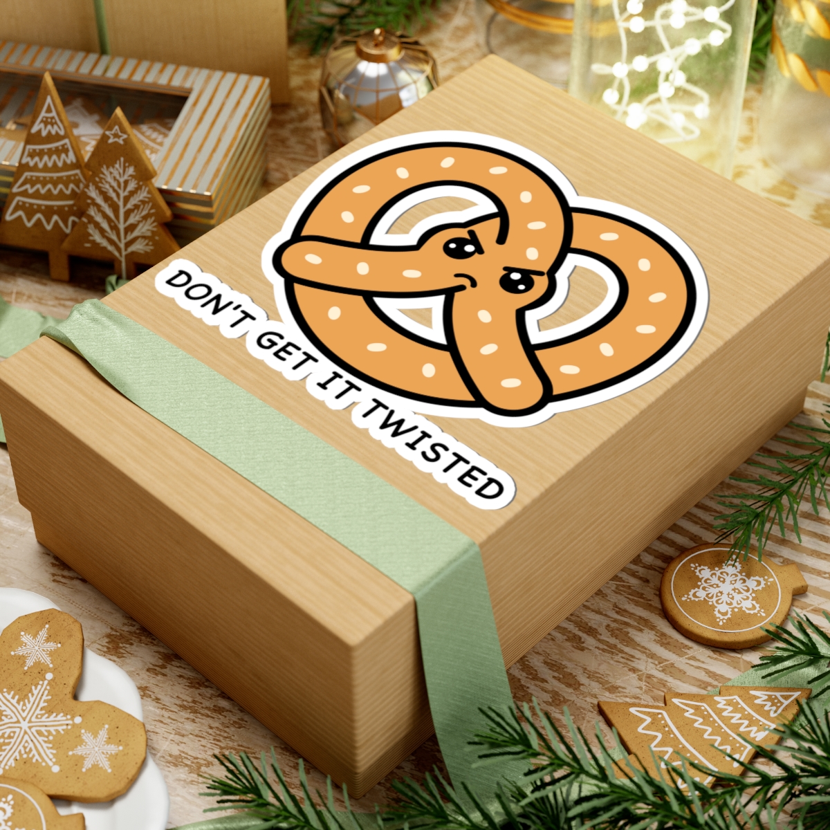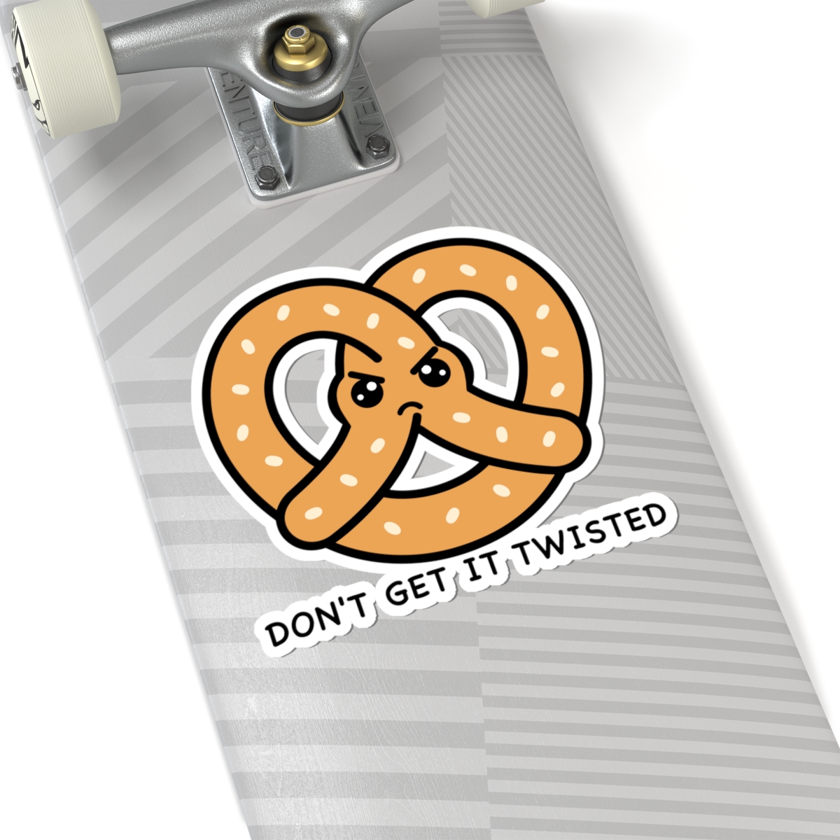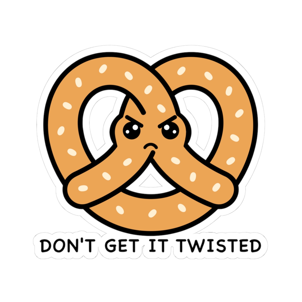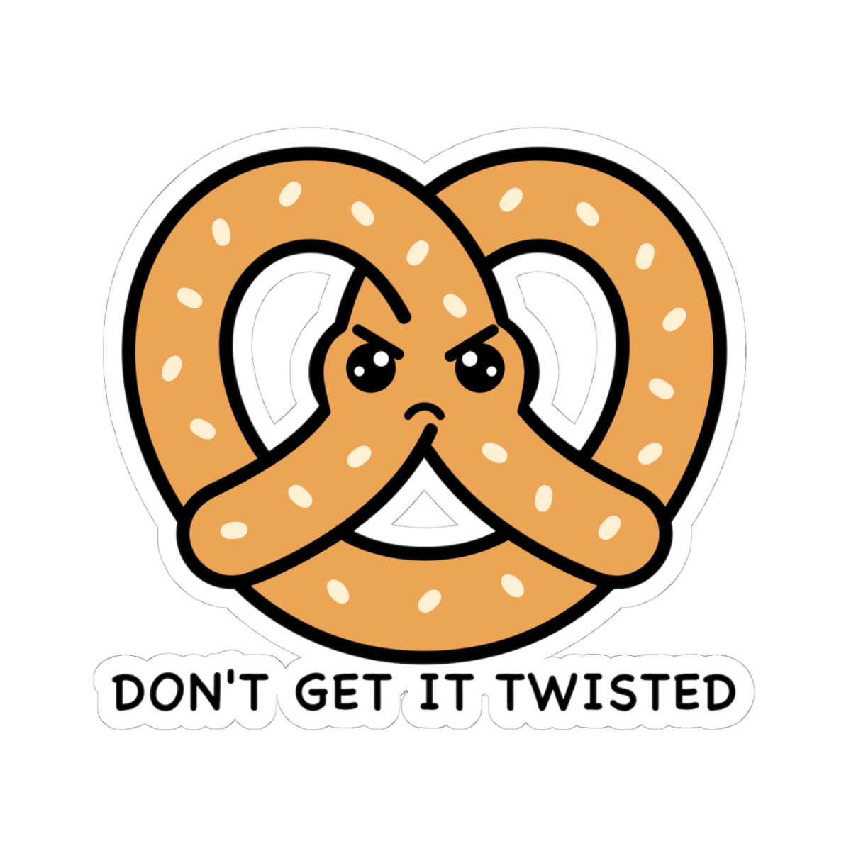 Salty and expressive – Features a kawaii-style pretzel with a bold frown, furrowed brows, and crossed arms—bringing the “don’t mess with me” energy in the cutest carb form.
