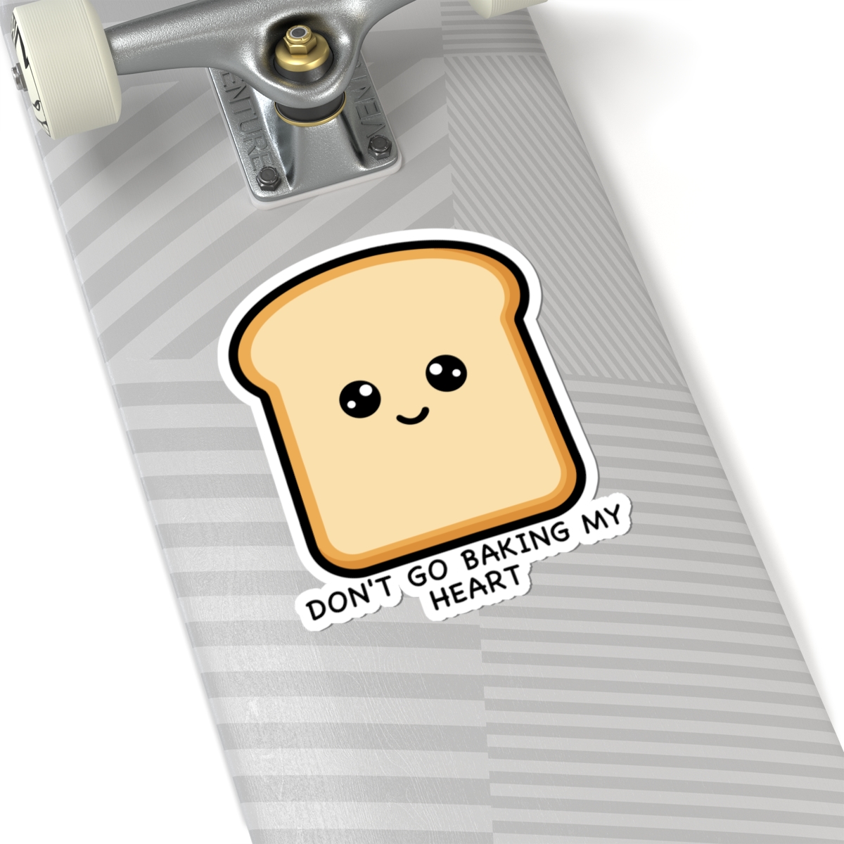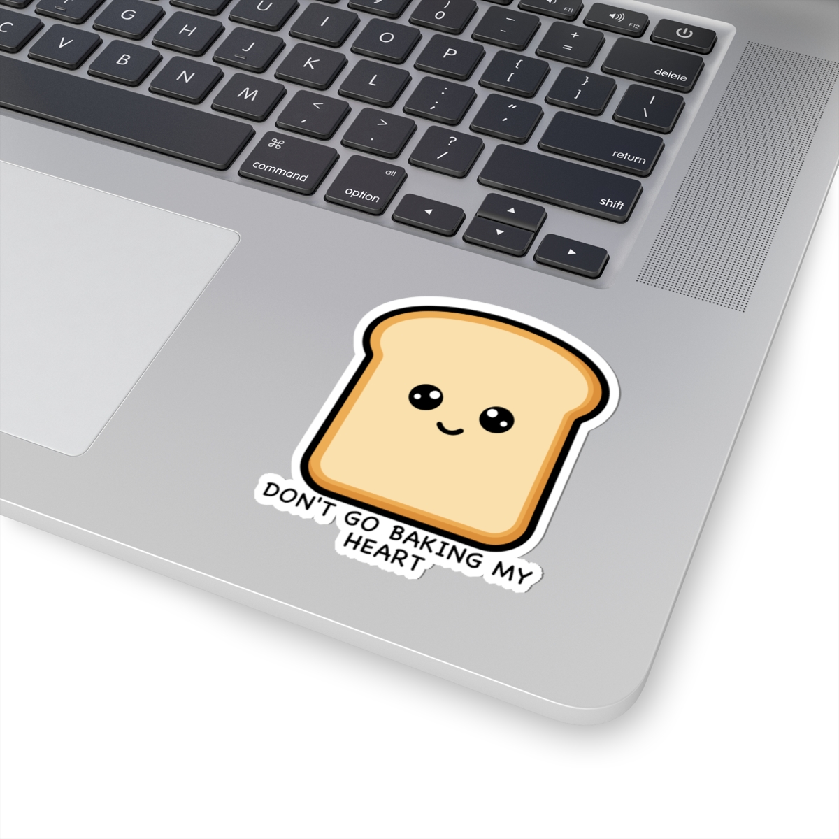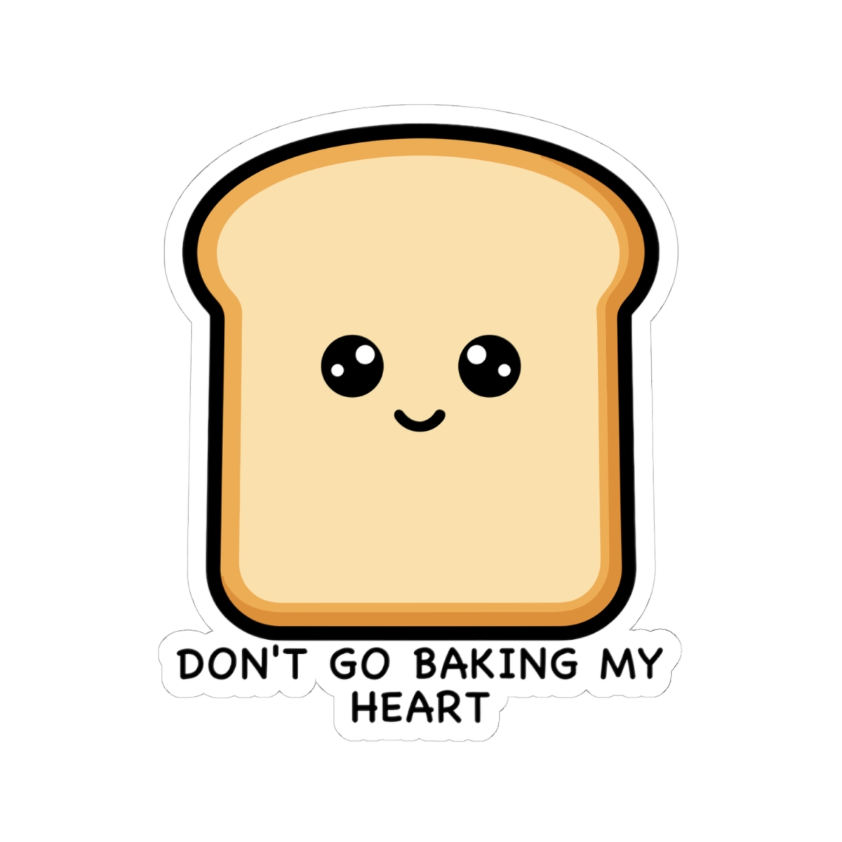 Add a slice of fun and love to your indoor collection with our “Don’t Go Baking My Heart” Bread Sticker! Featuring a cute slice of bread, this charming design pairs warmth and wit, making it the perfect accent for any space.