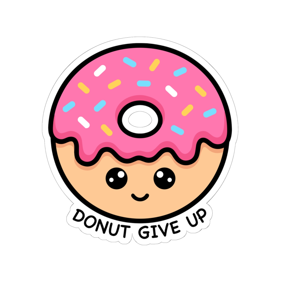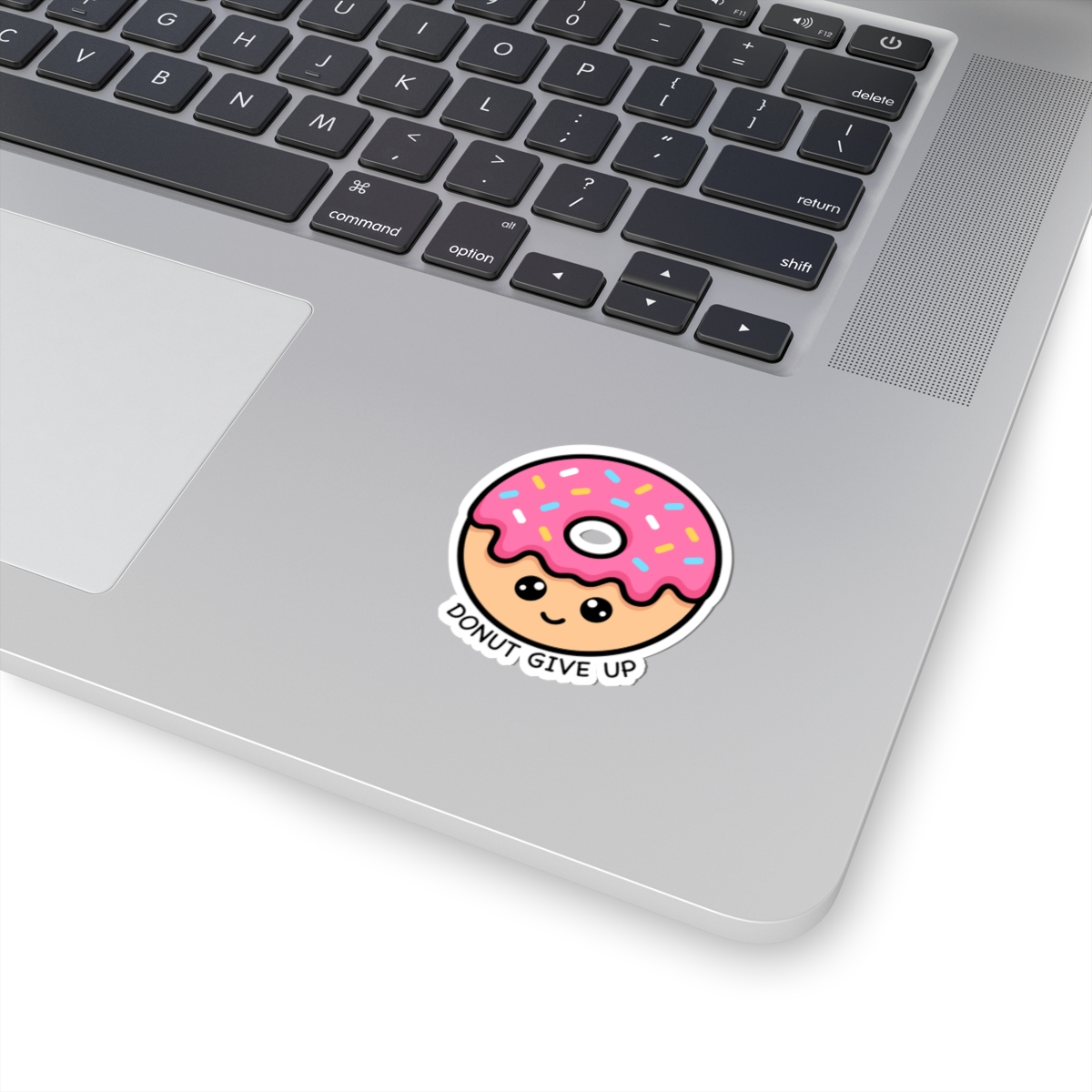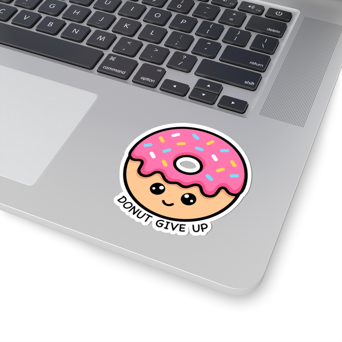 Design appeal – Featuring a cute and quirky illustration of a donut with the message “Donut Give Up,” this sticker adds a fun twist to your everyday items. Its playful design is sure to bring a smile to your face.