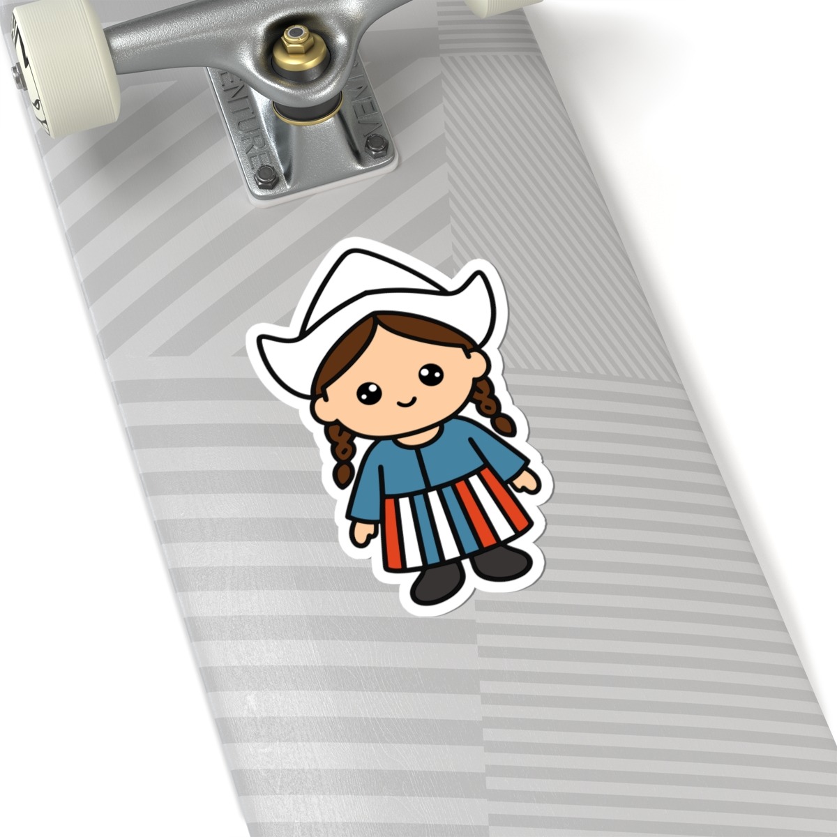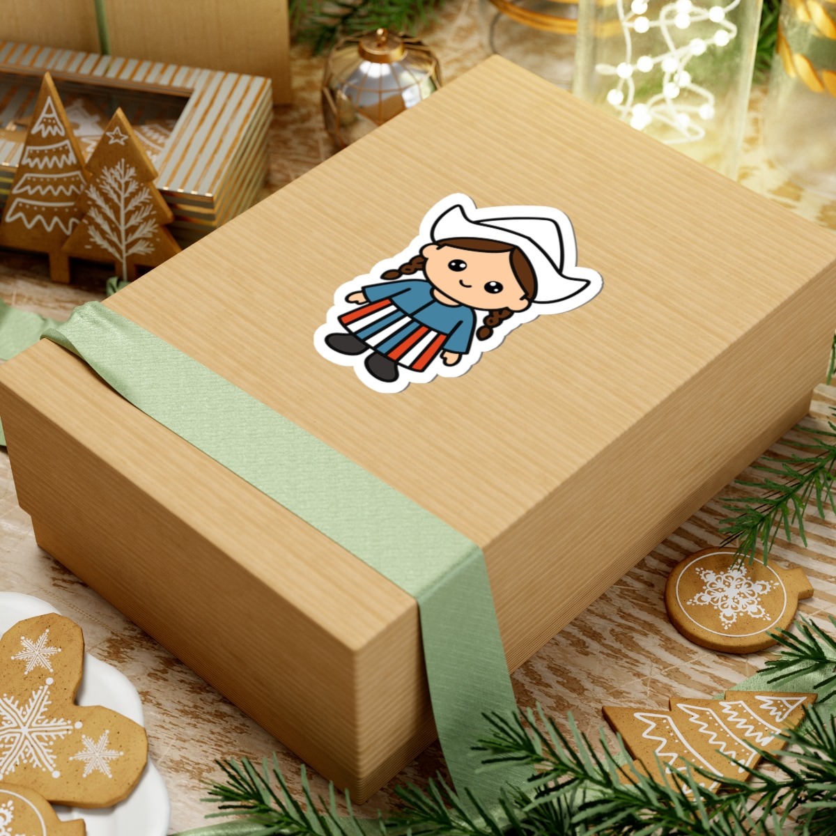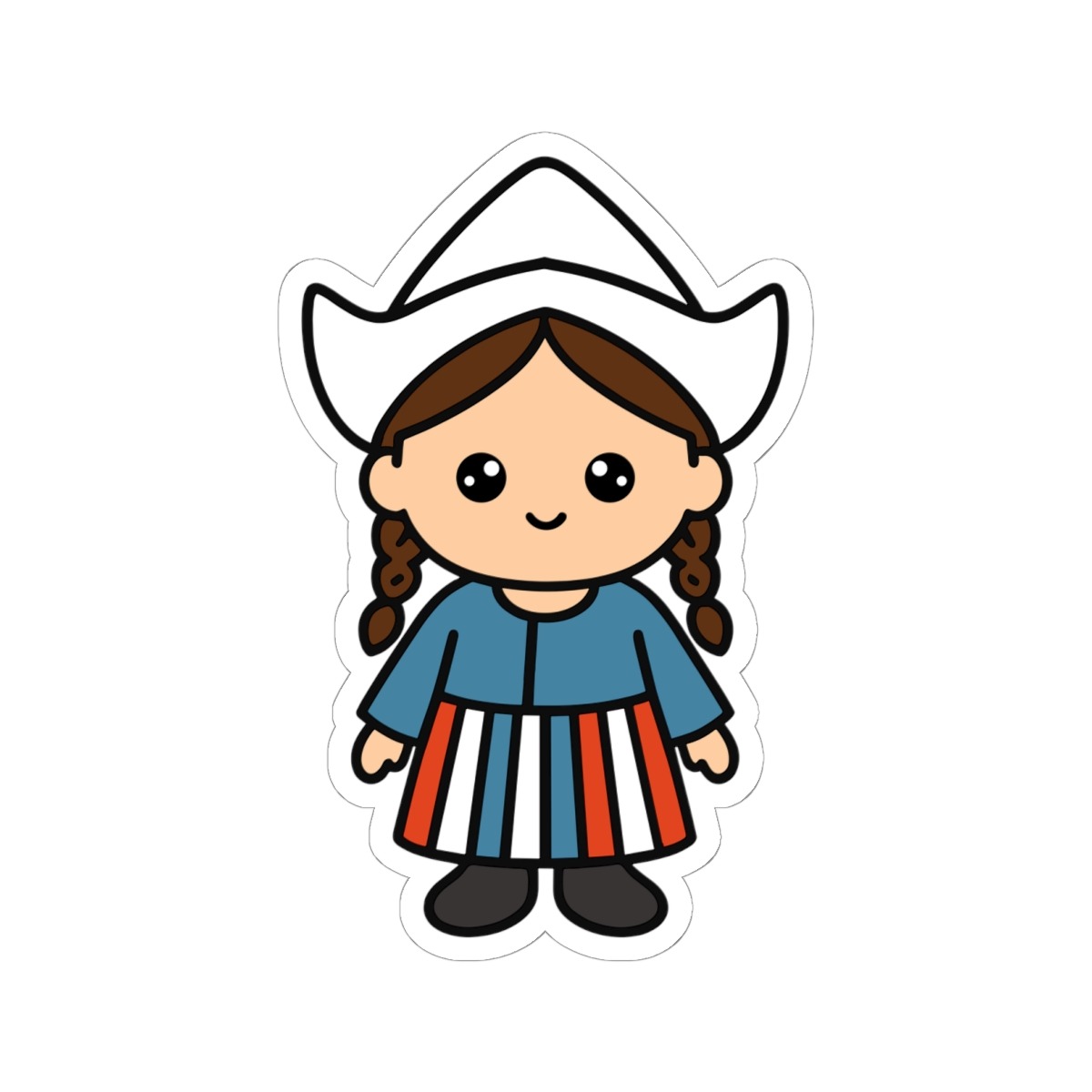 Straight from the storybooks of Holland, this Dutch girl in traditional attire brings bright smiles, folkloric flair, and windmill whimsy to your sticker collection!
