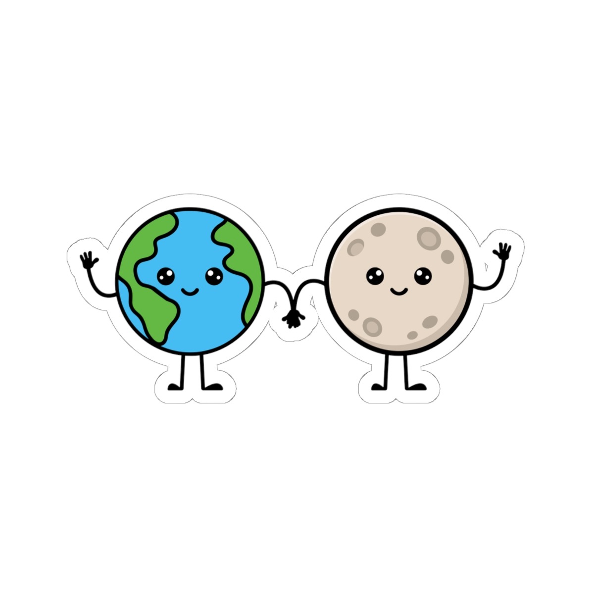 Design Appeal – Featuring a smiling blue-green Earth nestled close to a blushing gray Moon with matching rosy cheeks, it’s a heartwarming duo that radiates unity and charm.