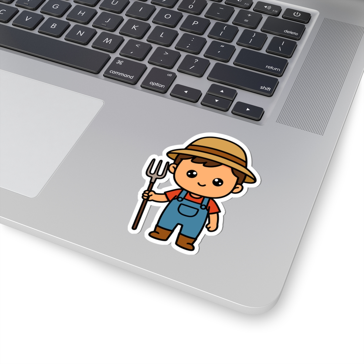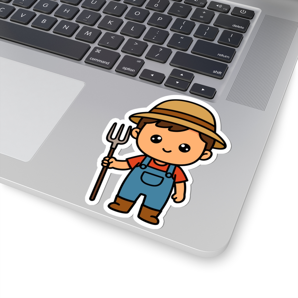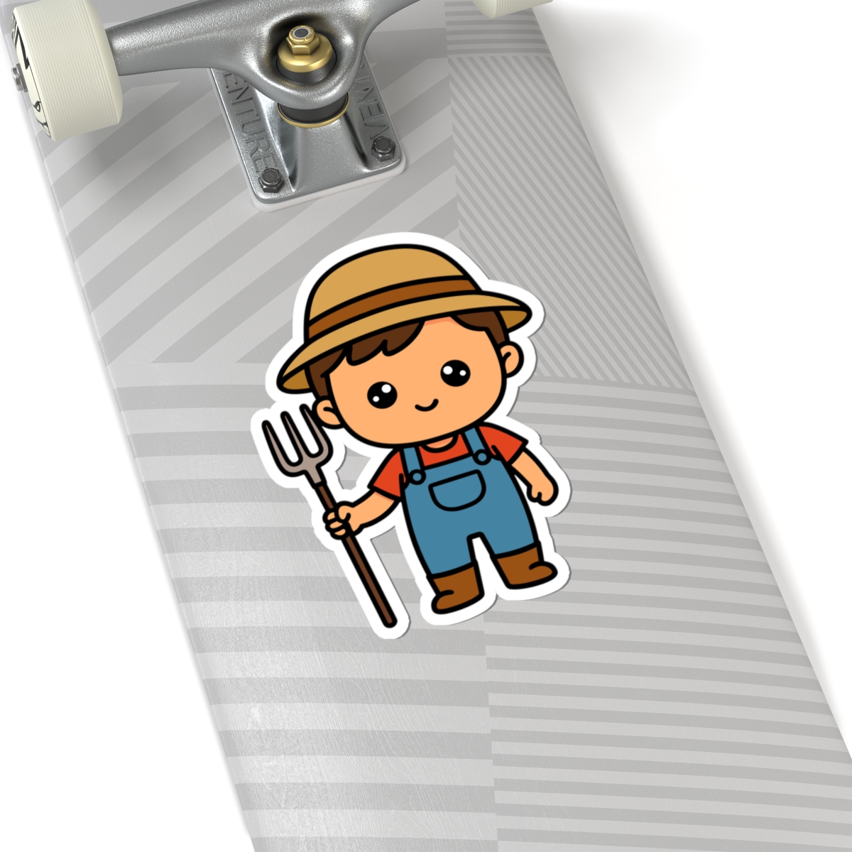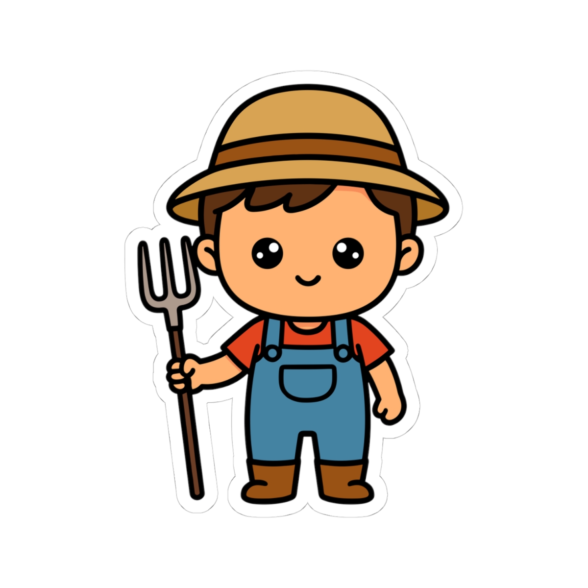 Hardworking and adorable – Features a kawaii-style farmer boy in overalls, a straw hat, and boots, with a big smile and ready to tend crops or chase chickens.