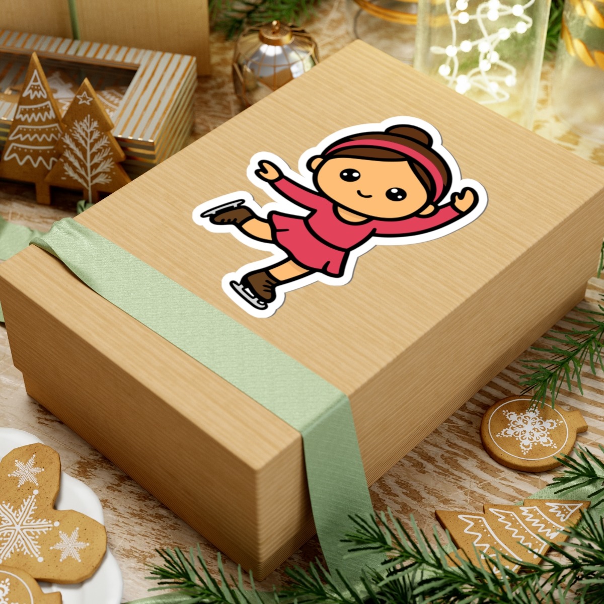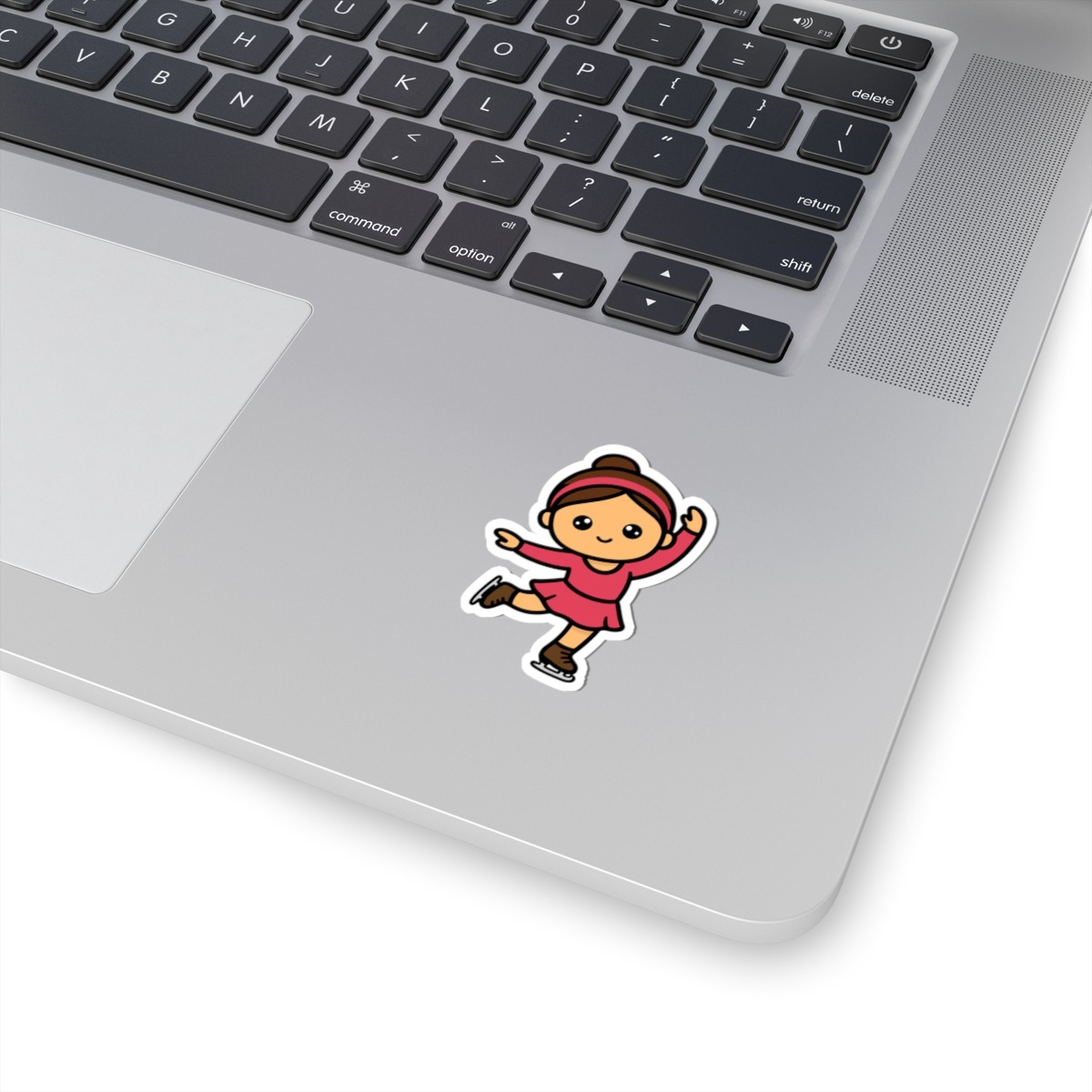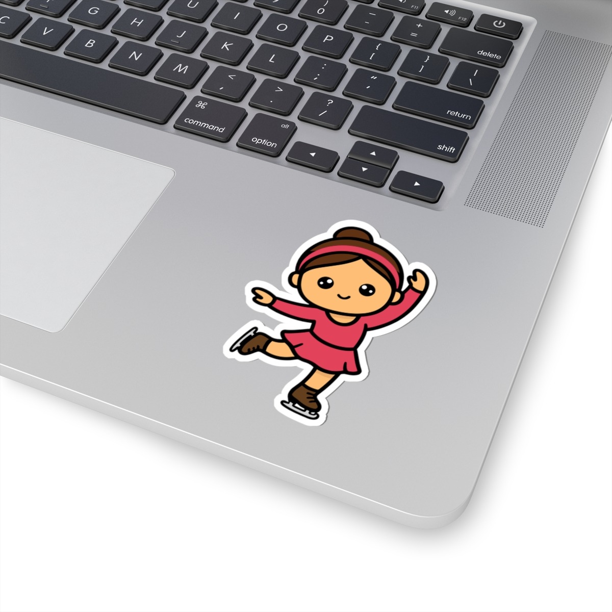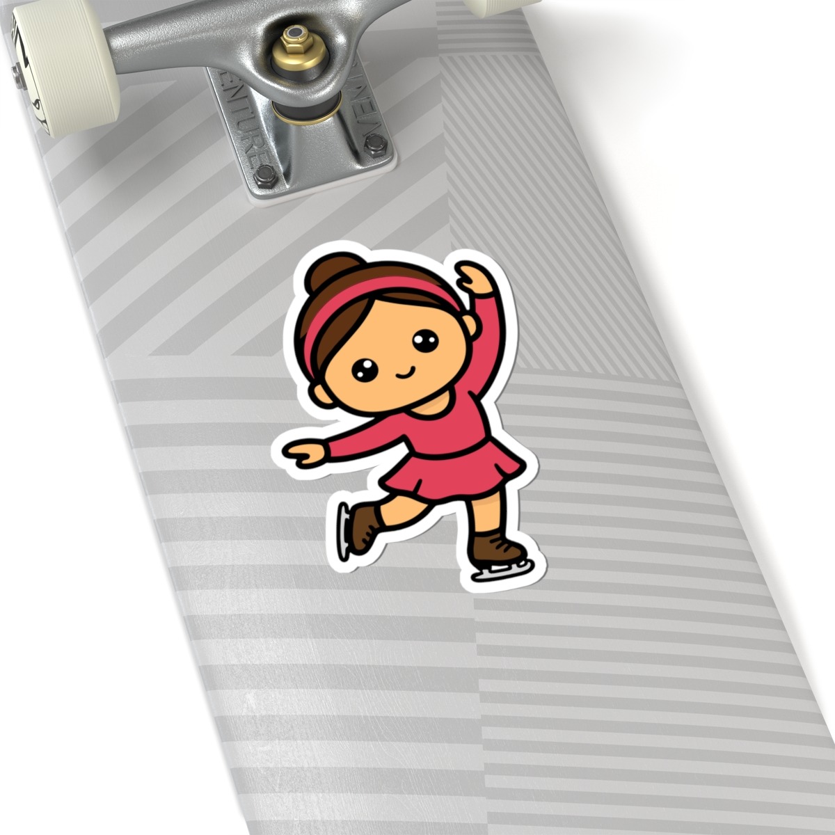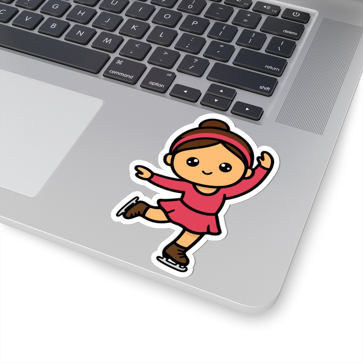 - Elegant and adorable – Features a kawaii-style figure skater in a pink costume, striking a classic pose mid-spin.