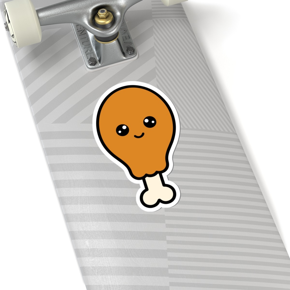 Design appeal: Features a kawaii-style fried chicken drumstick with a perfectly crispy golden coating, a cute bone handle, big sparkling eyes, and a joyful grin, radiating pure comfort-food cuteness and savory personality.