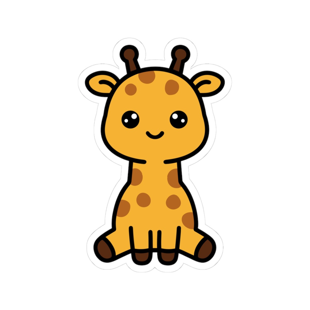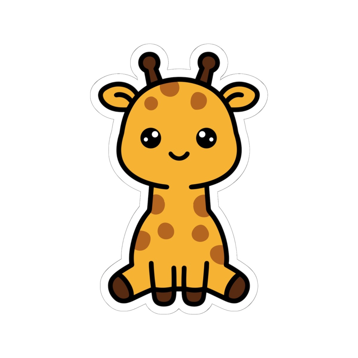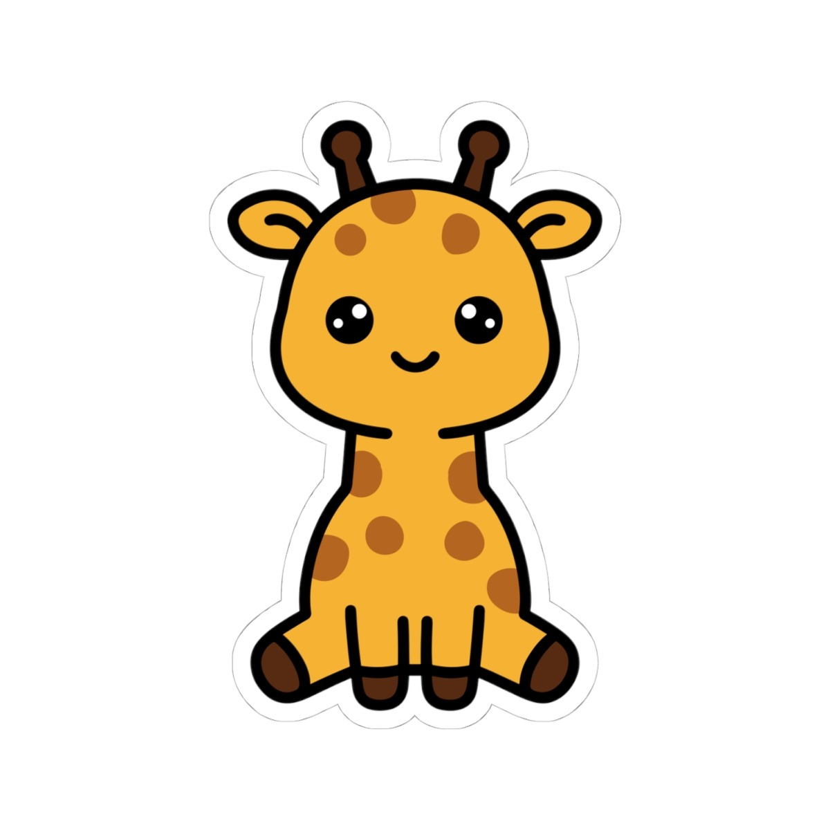 Spotted and sweet – Features a kawaii-style giraffe with big sparkling eyes, tiny horns, a goofy grin, and spots from head to hoof.