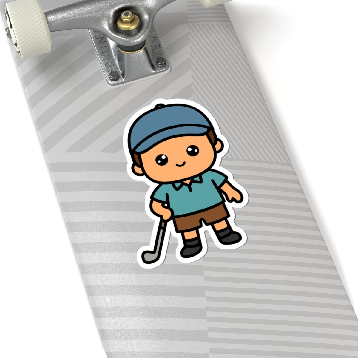 Calm, cool, and swinging with style, this little golfer boy is ready to bring hole-in-one charm to your sticker collection!