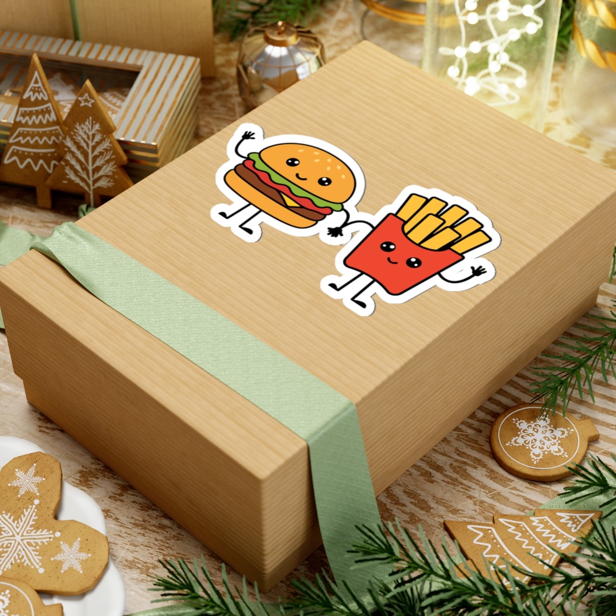 Bring a tasty duo of cuteness into your indoor spaces with this adorable hamburger and french fries sticker—it’s the perfect pair to add flavorful fun to your favorite gear!