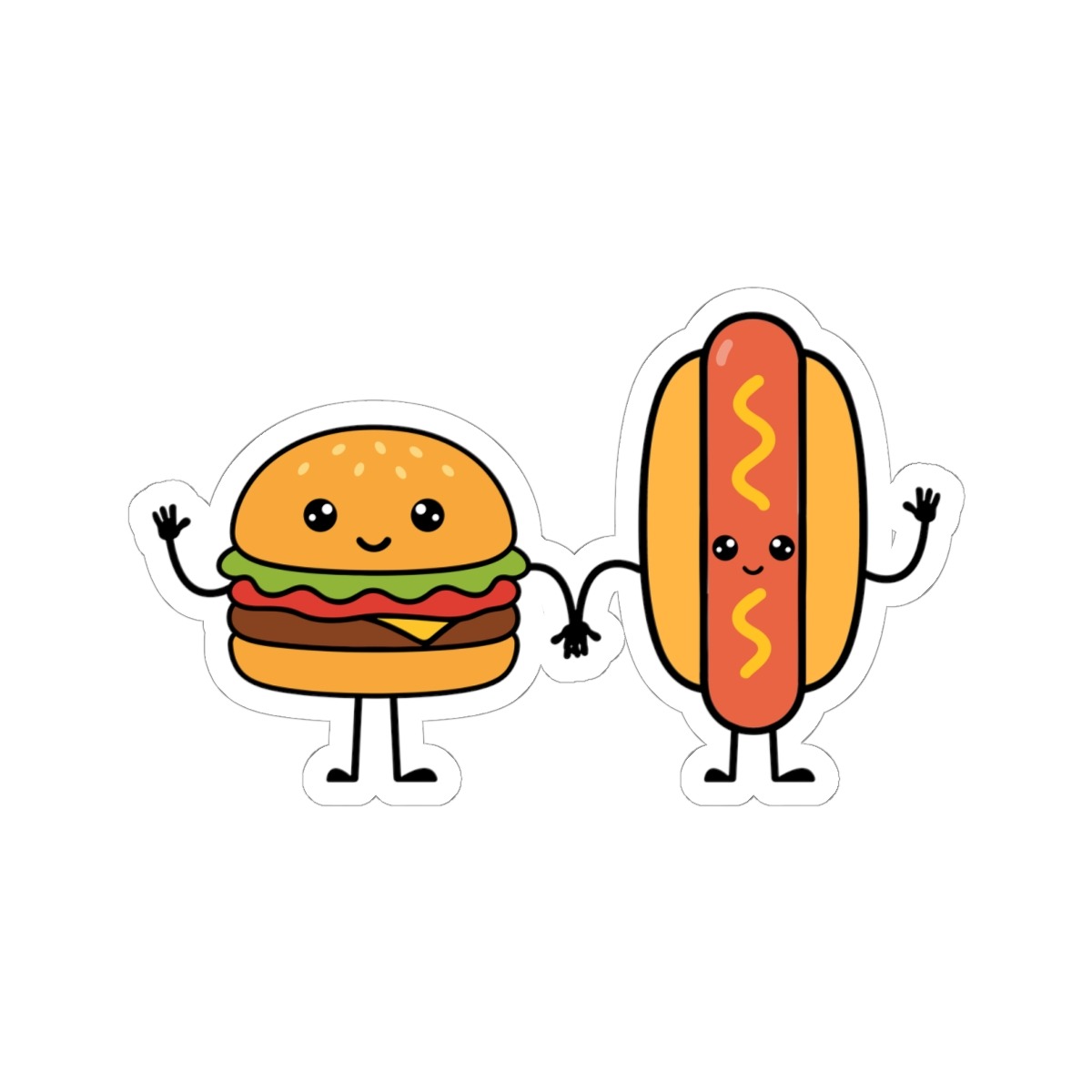 Design Appeal – Featuring a smiling hamburger and a cheerful hotdog standing side by side, both with adorable expressions and playful details, it’s a kawaii snack tandem that brings instant joy.