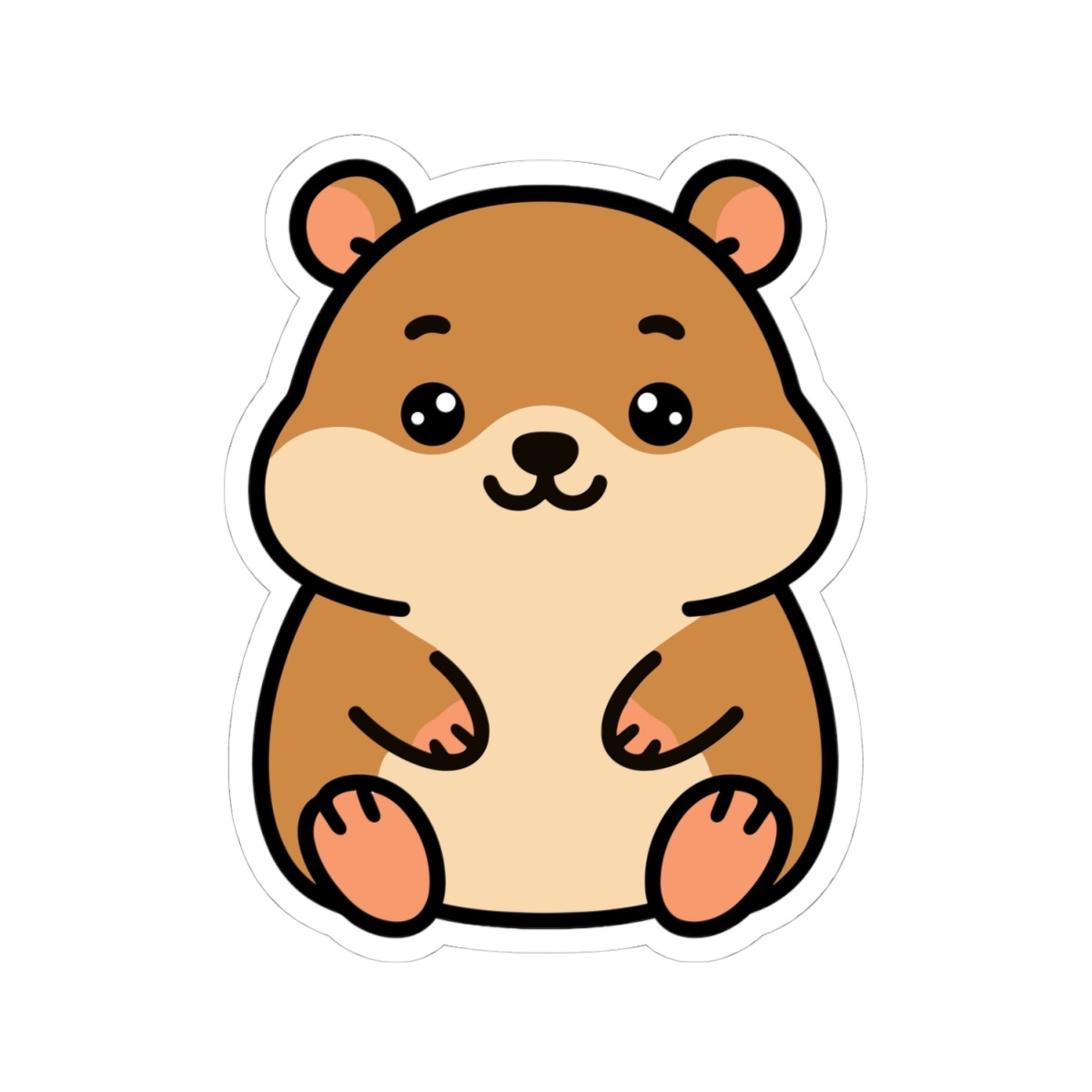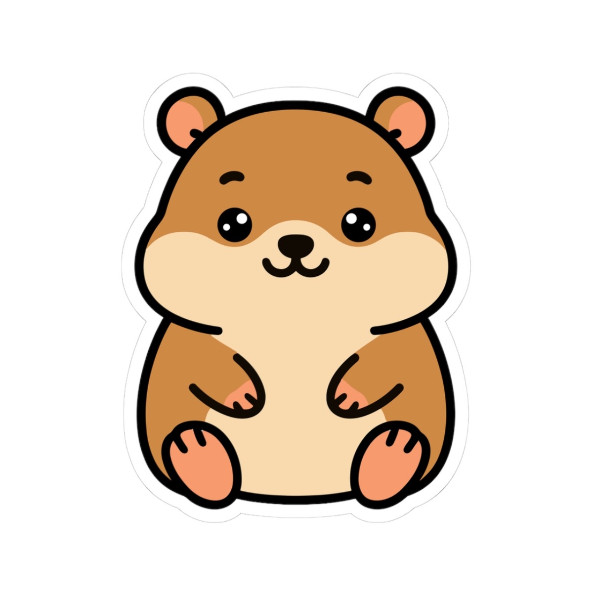 Design appeal: Showcasing a kawaii-style hamster with chubby cheeks, tiny paws, and a big beaming smile, this sticker radiates pure hamster joy and cuteness overload.