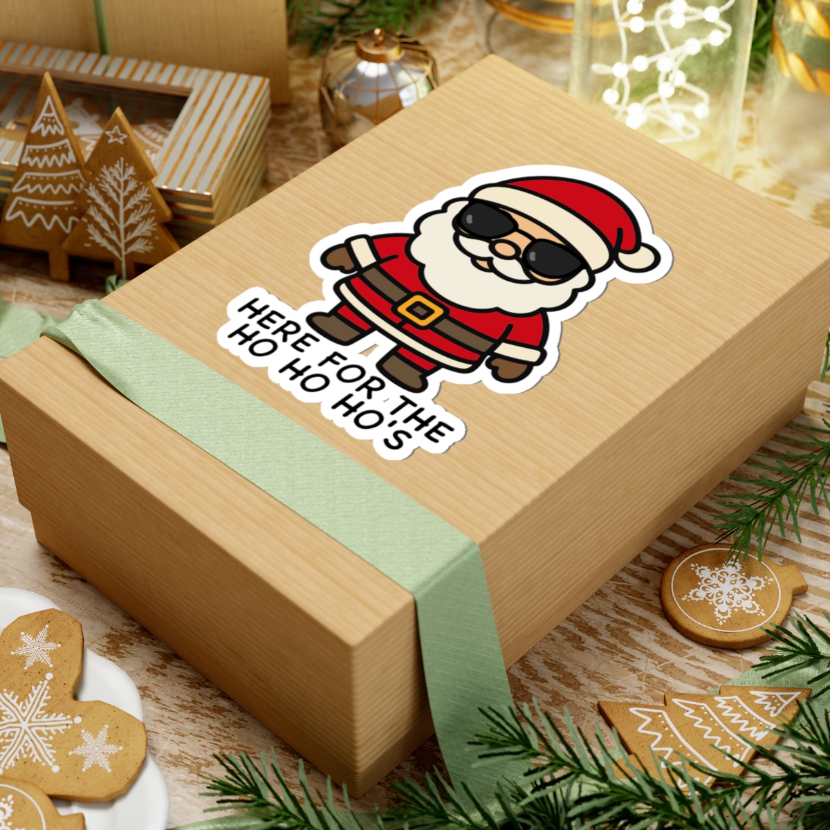 Cool and cheeky – Features a kawaii-style Santa with black sunglasses, a big grin, and playful swagger—because this guy’s here for the ho ho ho’s and holiday laughs.