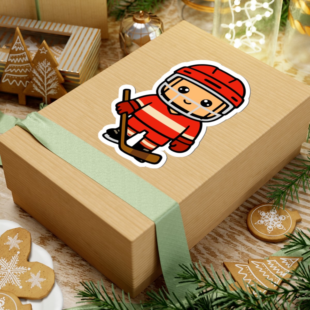 - Frosty and fierce – Features a kawaii-style hockey boy in a bold jersey, helmet, skates, and hockey stick in hand, with a confident smile and game-on pose.