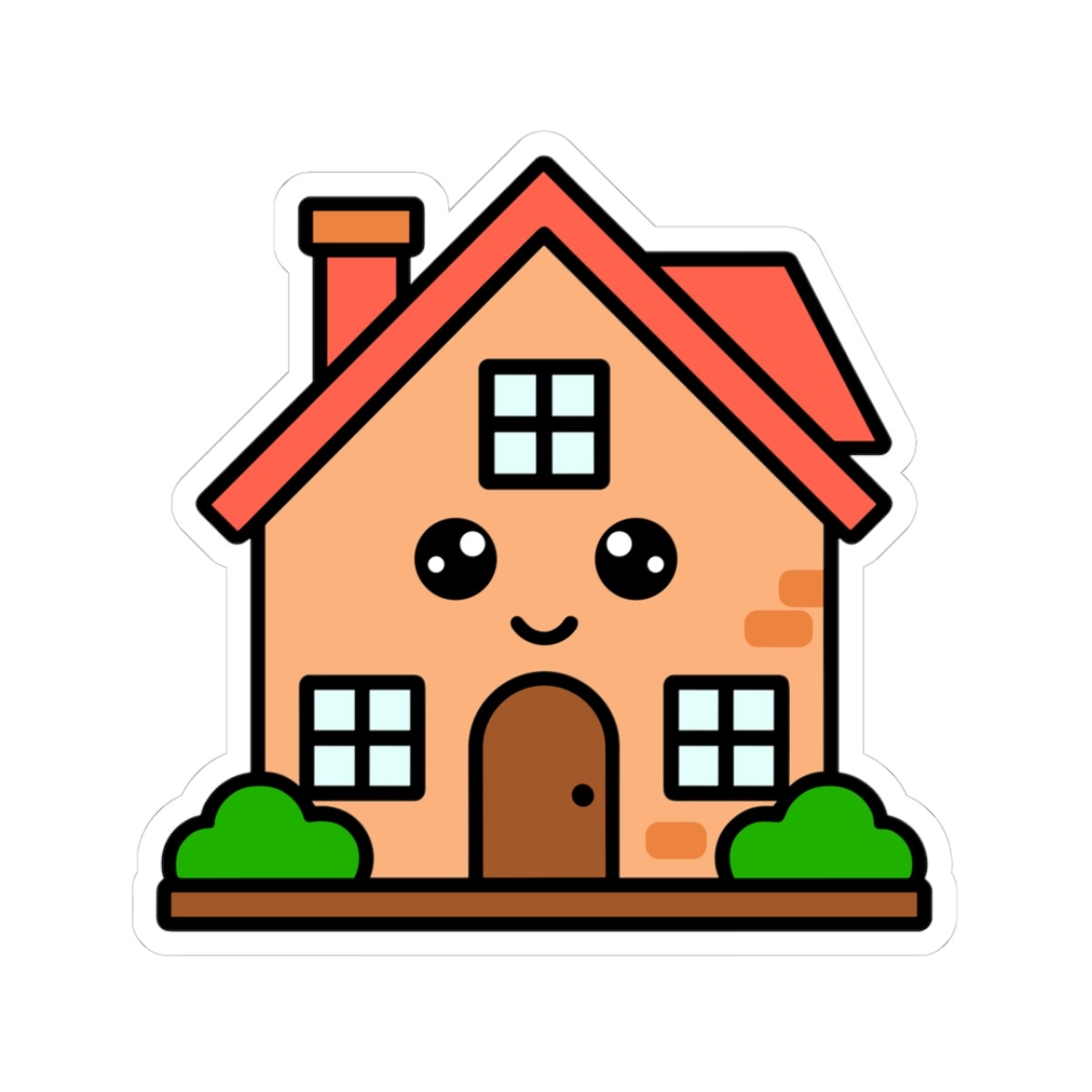 Design appeal: Features a kawaii-style house with a cute red roof, pastel-colored walls, cheerful windows, a tiny door, big sparkling eyes, and a joyful grin, radiating pure homely cuteness and warm personality.