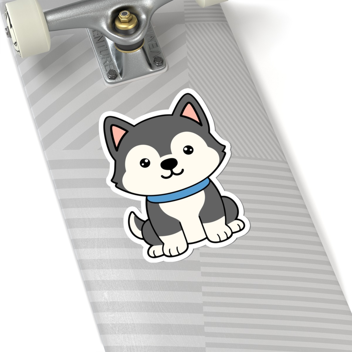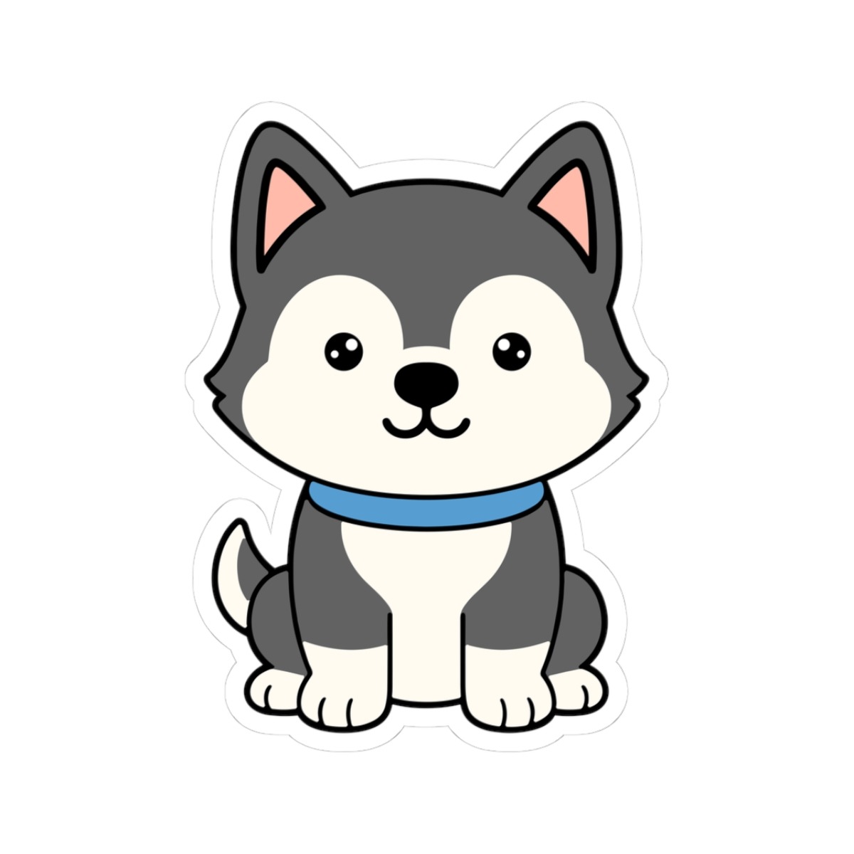 Design appeal: Features a kawaii-style husky with a plush grey-and-white coat, big sparkling eyes, perky ears, and a playful grin, radiating pure canine cuteness and adventurous spirit.