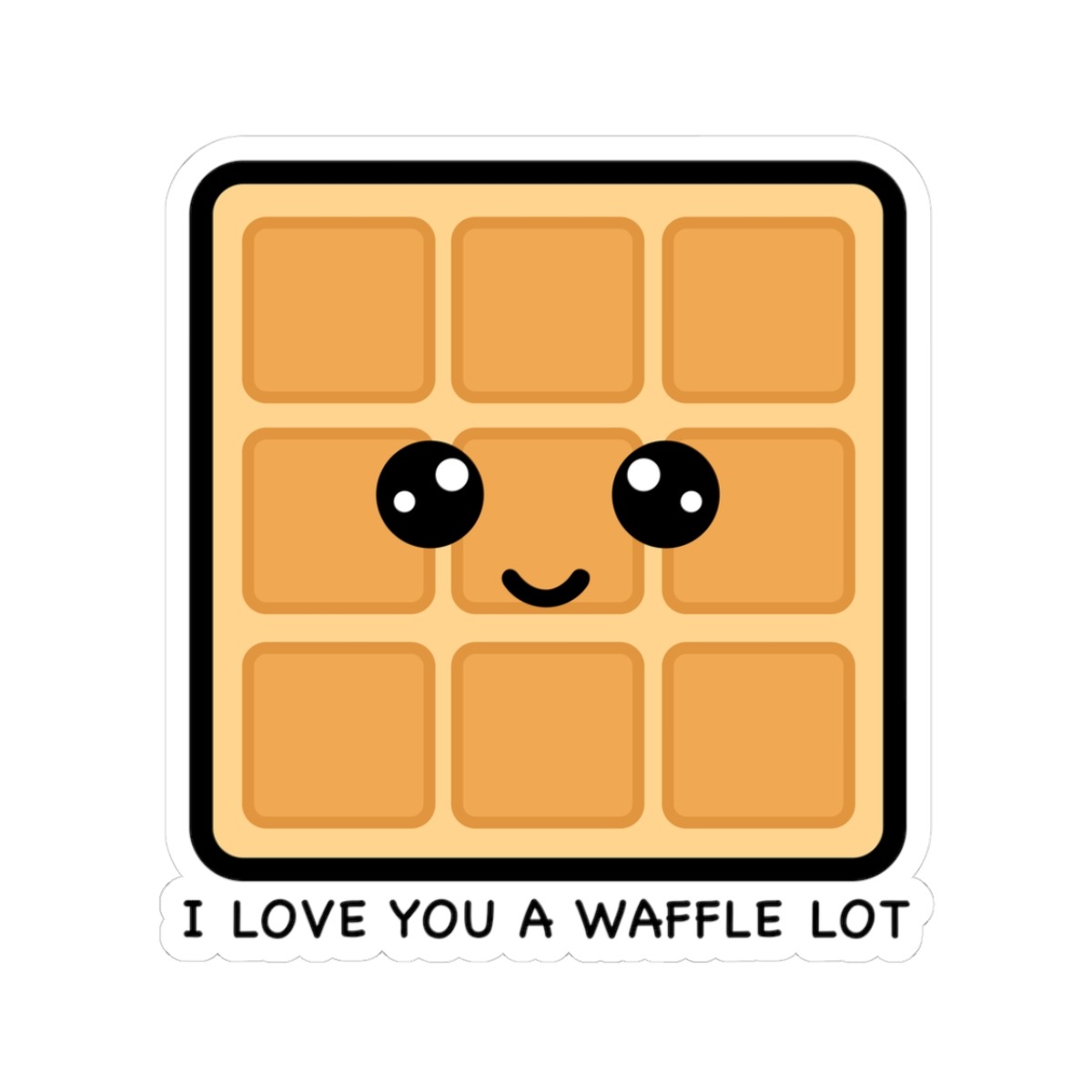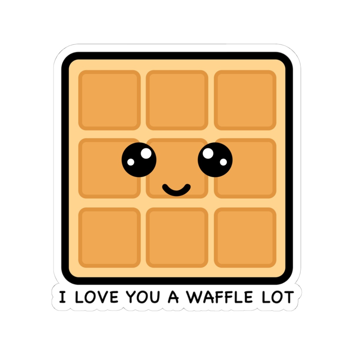 Design appeal: Features a kawaii-style waffle with golden squares, big sparkly eyes, and the punny phrase “I Love You a Waffle Lot” in playful lettering — it’s pure breakfast-time bliss!