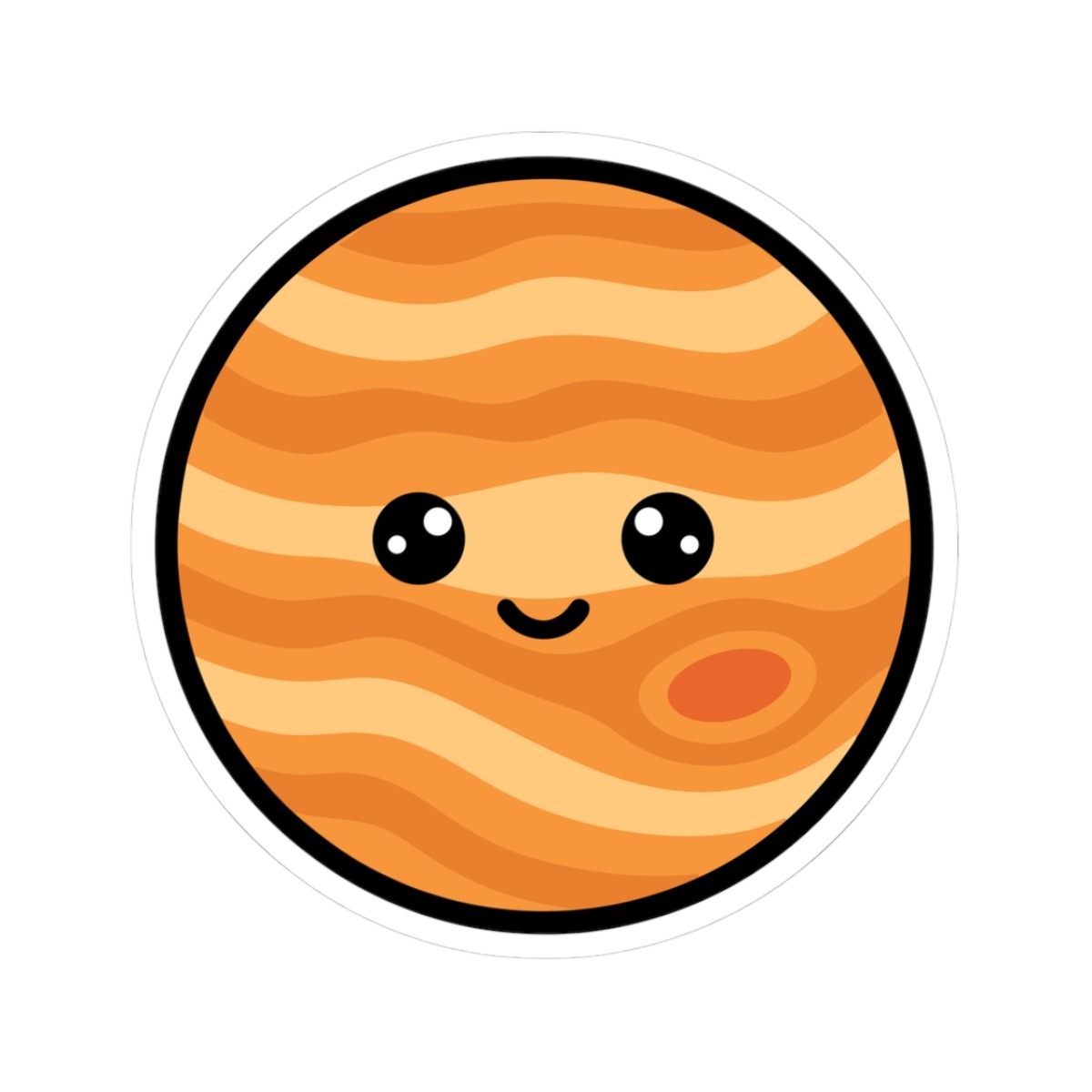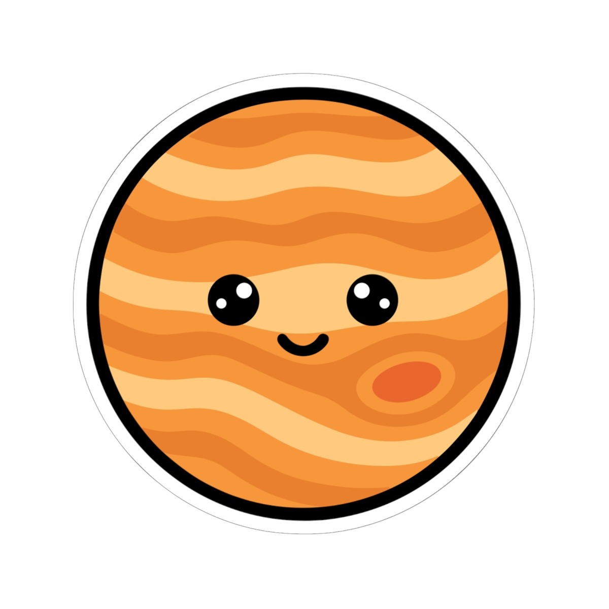 Design appeal: Features a kawaii-style Jupiter with swirling bands of orange, beige, and white, the iconic Great Red Spot swirling on its surface, big sparkling eyes, and a joyful grin, radiating pure outer-space cuteness and cosmic wonder.