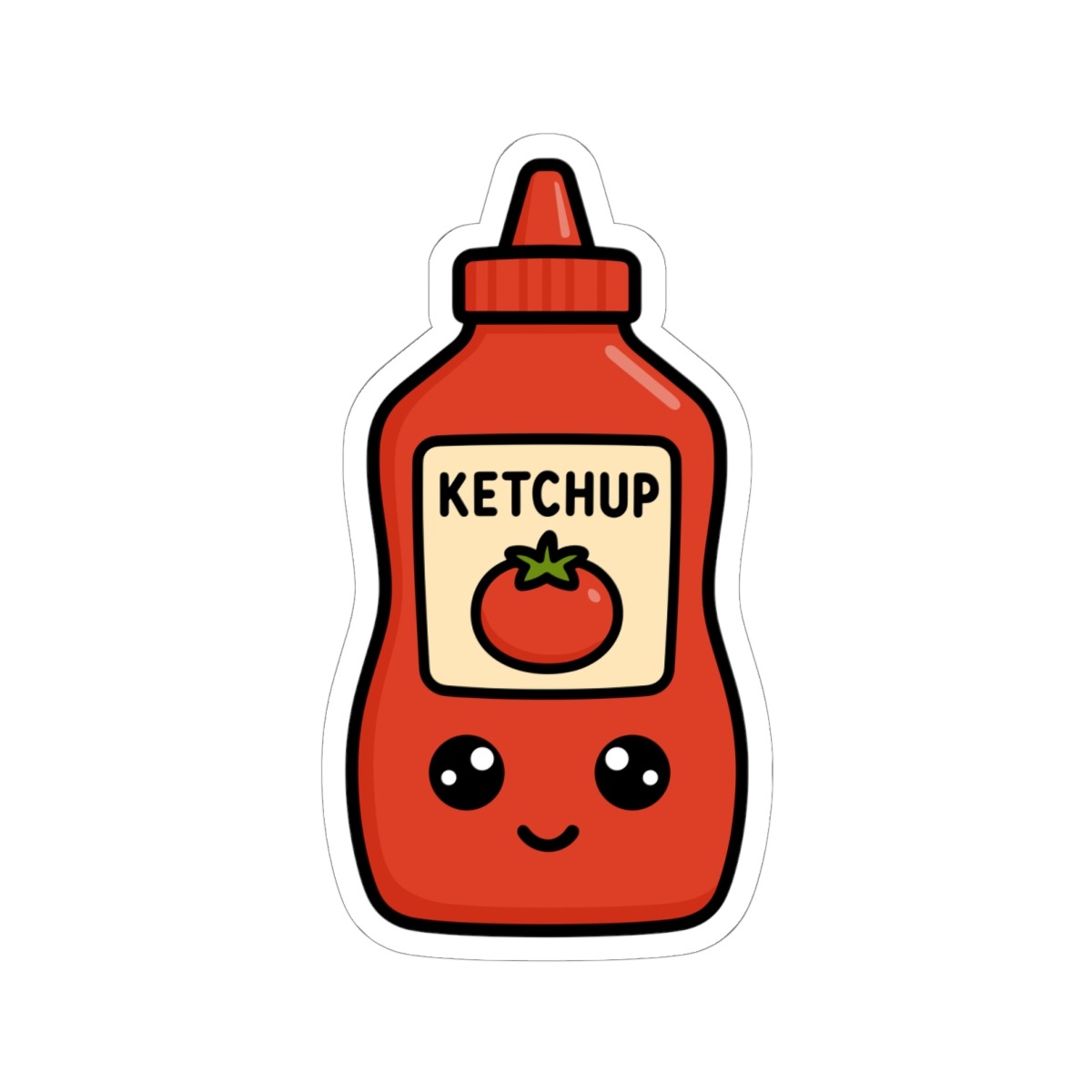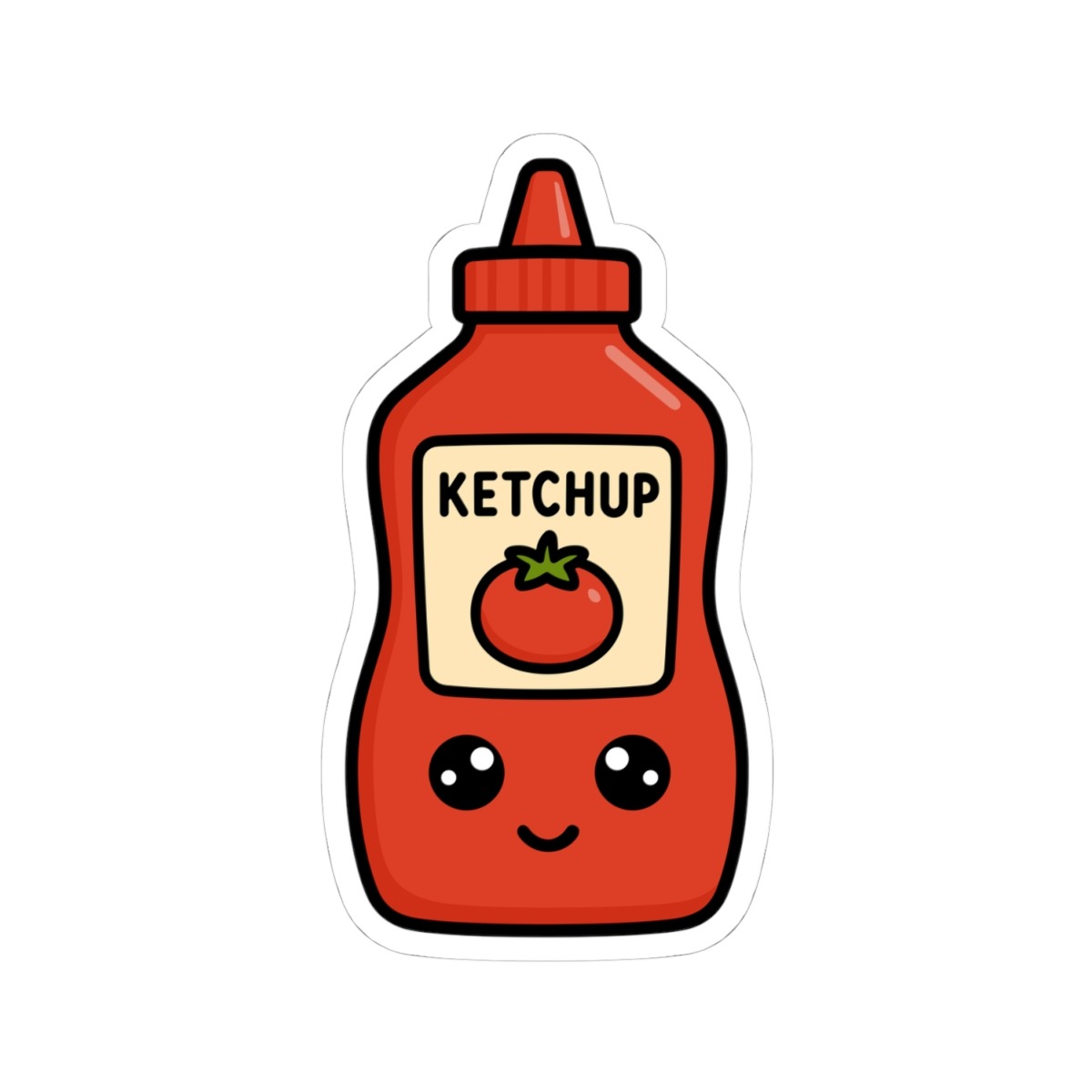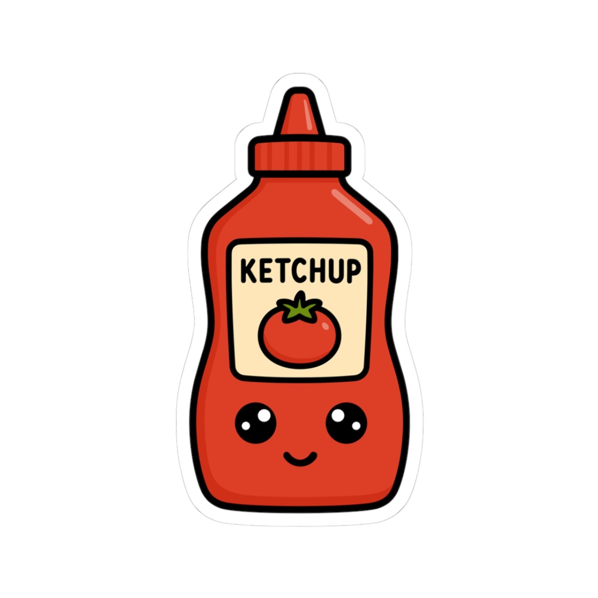Design appeal: Features a kawaii-style ketchup bottle in classic bright red, a cute tomato label, big sparkling eyes, and a joyful grin, radiating pure condiment cuteness and playful personality.