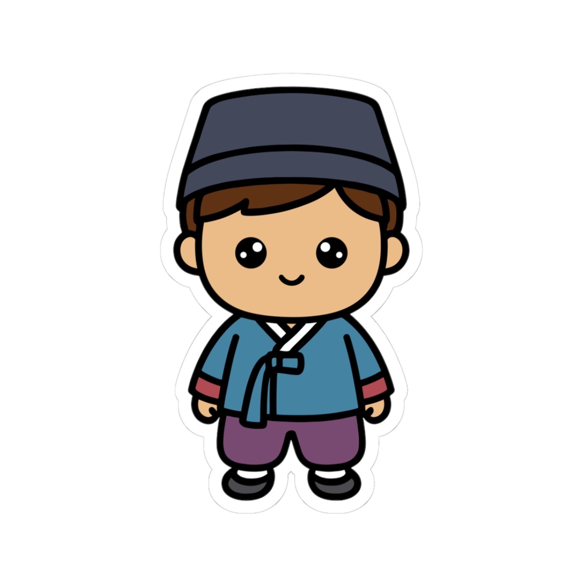 Steeped in elegance and cultural pride, this Korean boy in traditional attire adds a graceful touch of heritage to your sticker collection—perfect for peaceful vibes and timeless style!