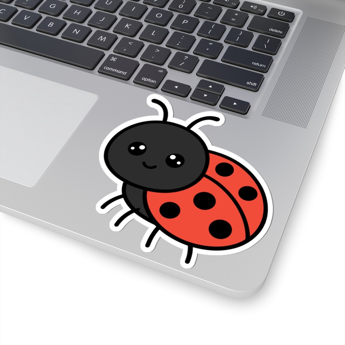 Design appeal: Features a kawaii-style ladybug with a shiny red shell dotted with black spots, tiny antennae, big sparkling eyes, and a joyful smile, radiating pure good luck and playful energy.