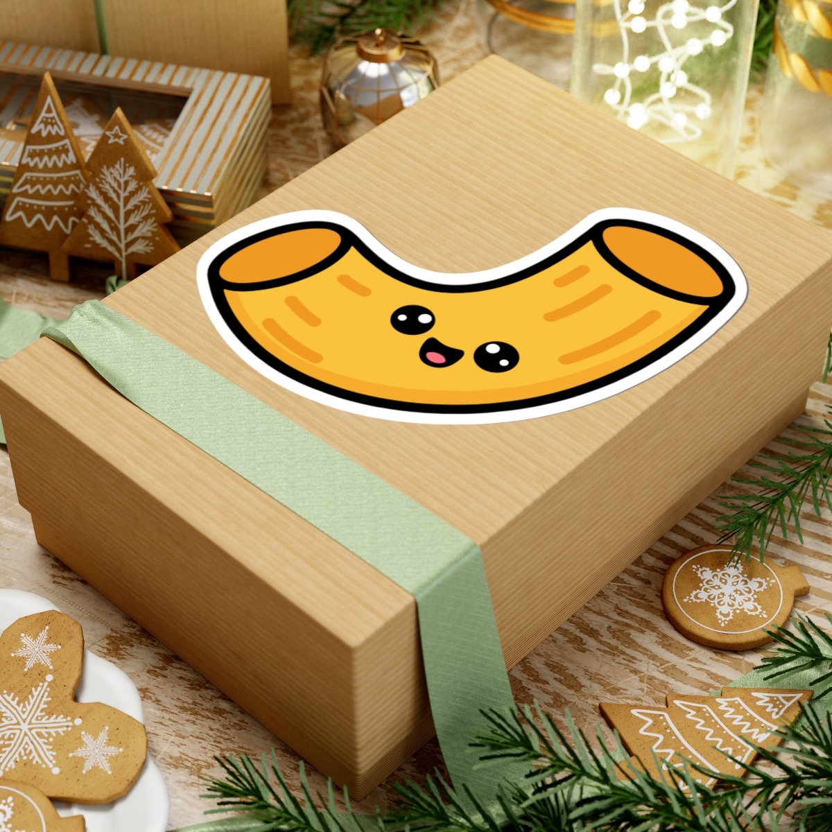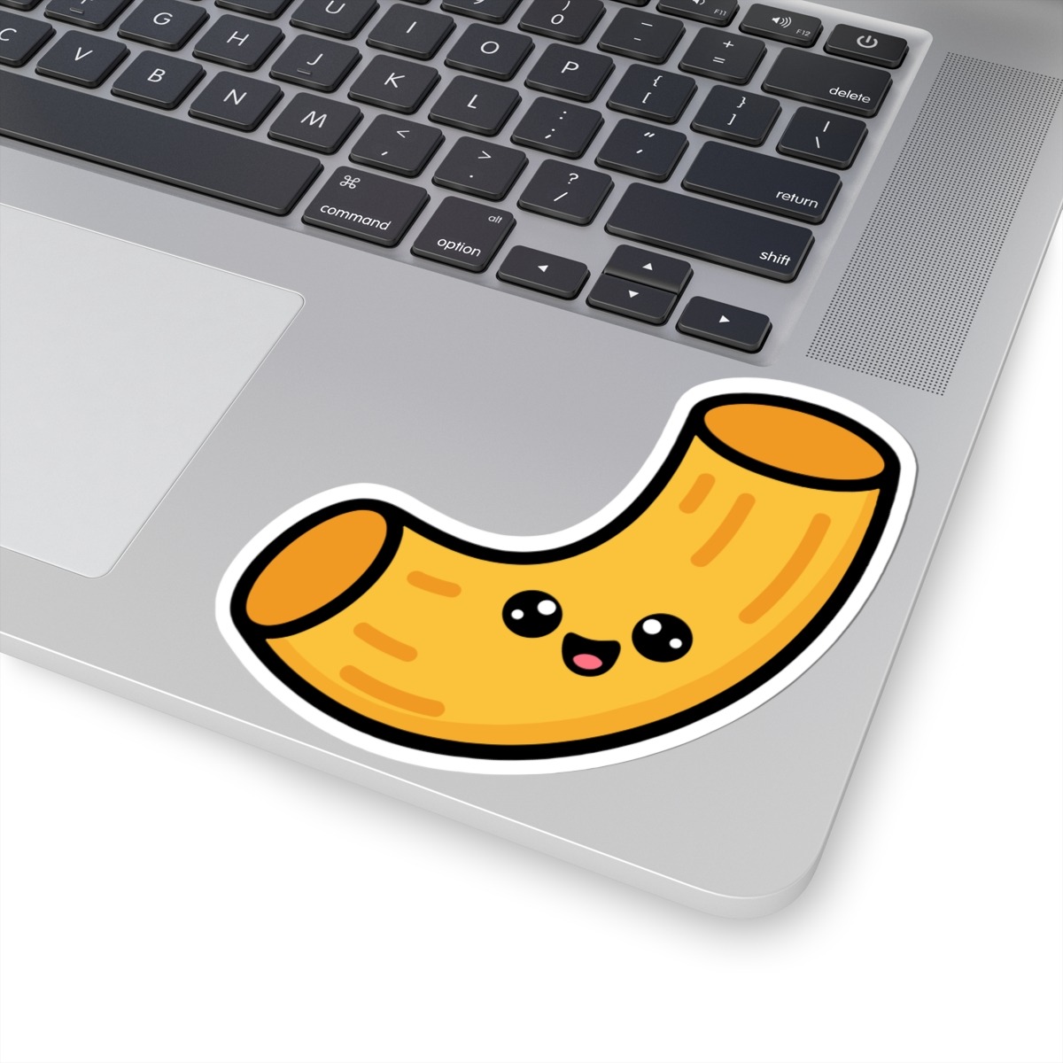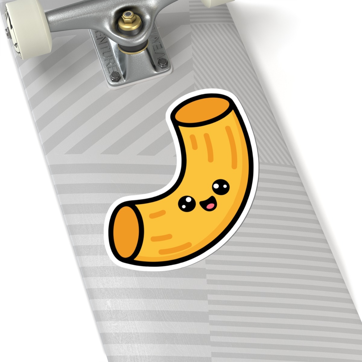 Curved and cute – Features a kawaii-style elbow macaroni noodle with a golden hue, happy smiling face, and just the right amount of pasta personality.