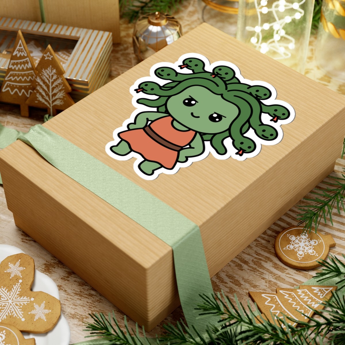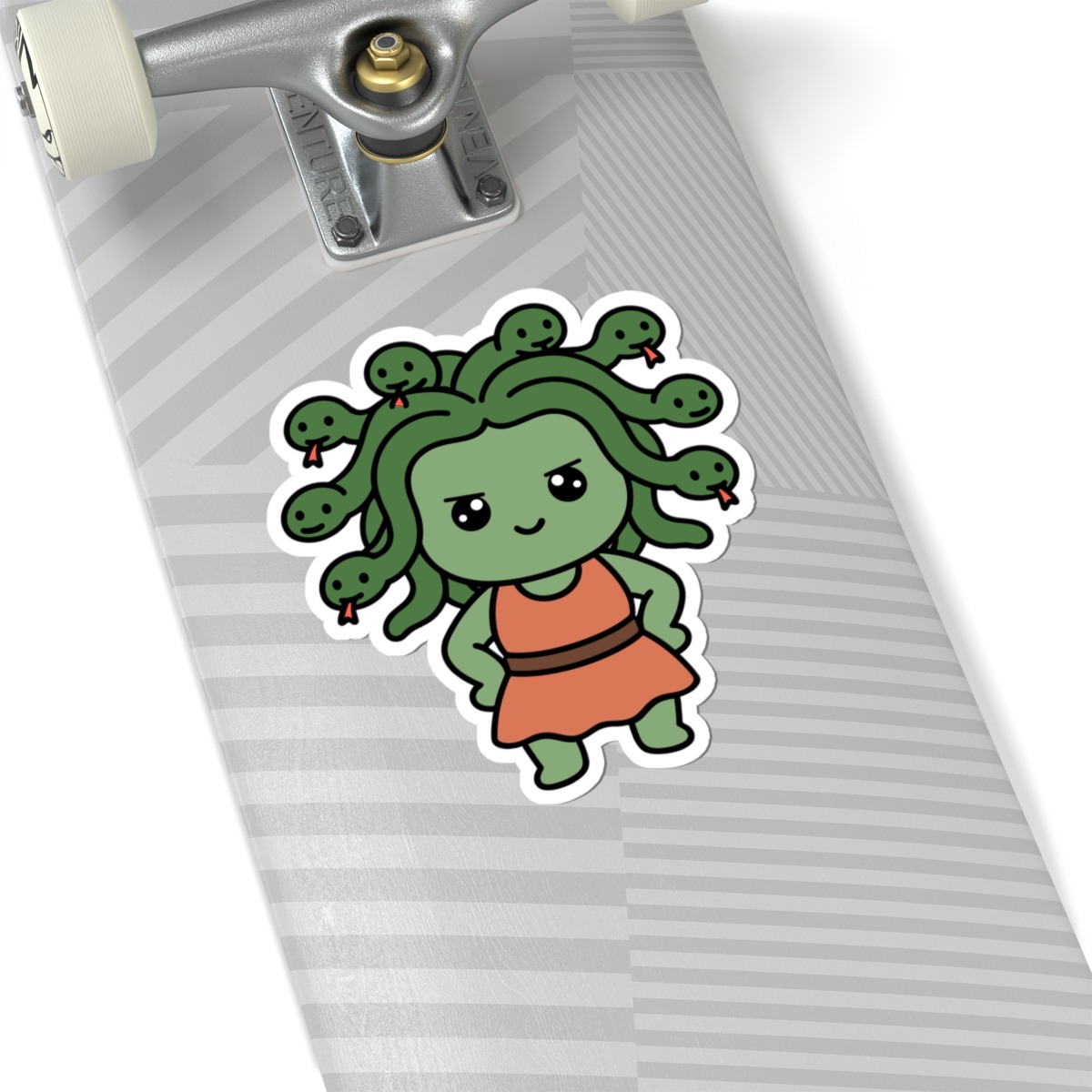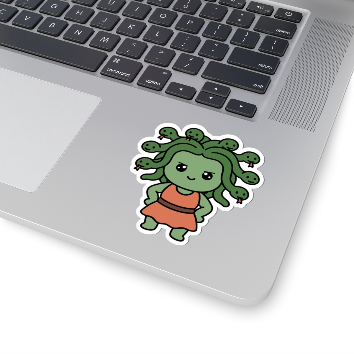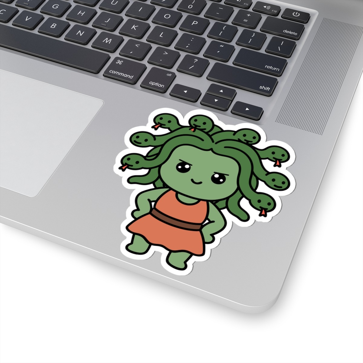 - Snakey and stunning – Features a kawaii-style Medusa with big sparkling eyes, soft green curls made of friendly little snakes, and a sassy smile that says she’s more than just a myth.