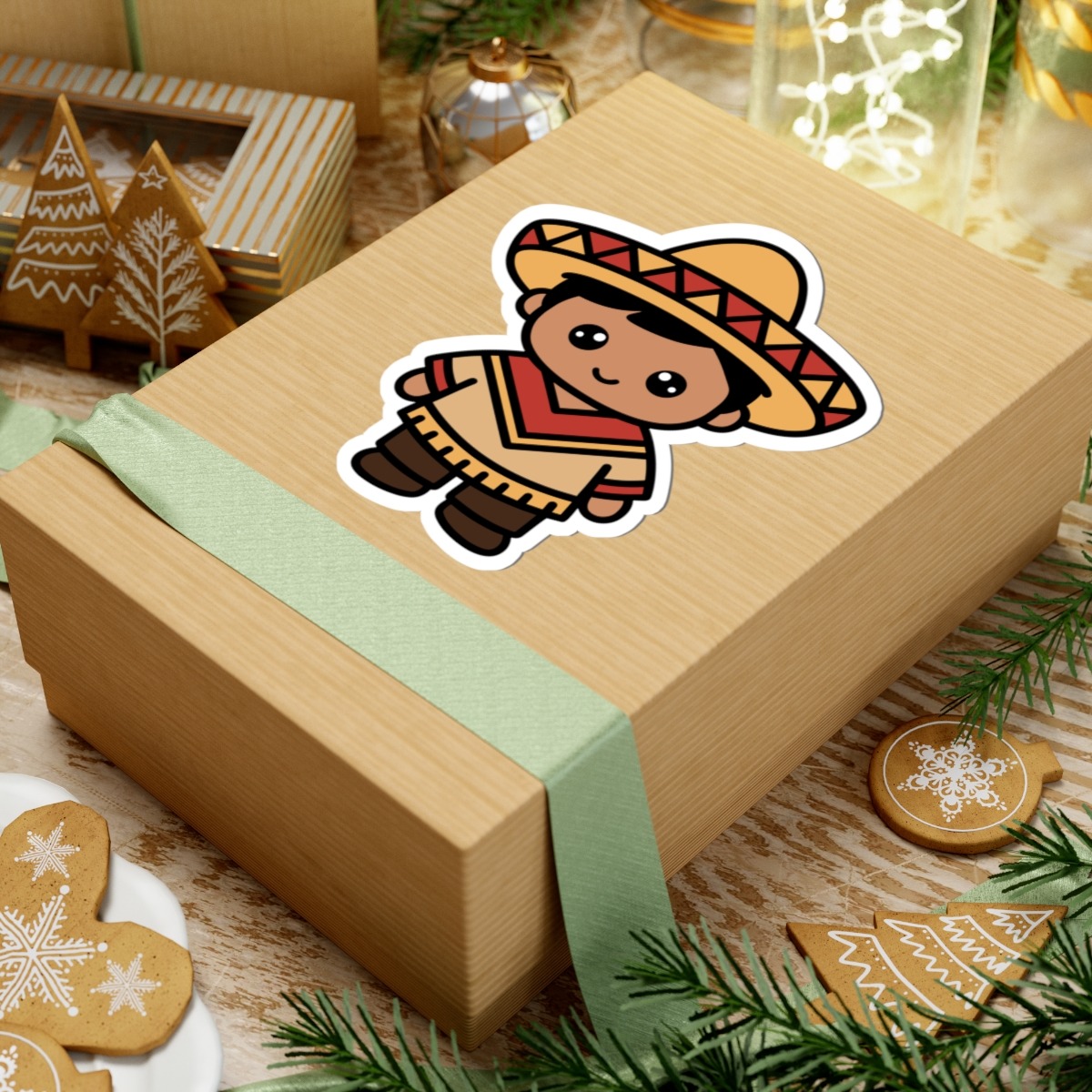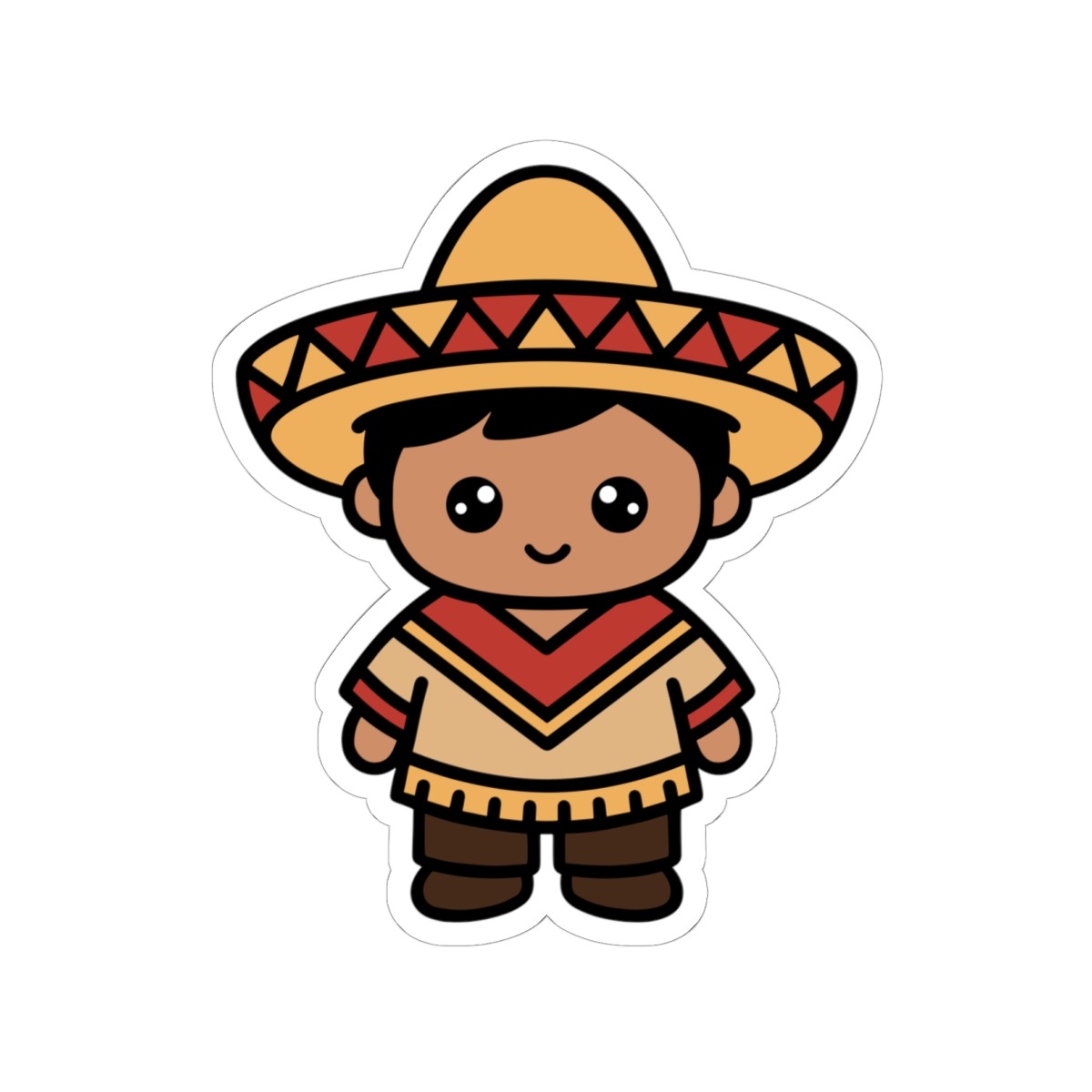 Festive and folklórico – Features a kawaii-style Mexican boy wearing a pancho, a wide-brimmed sombrero, and a cheerful grin that says ¡olé!