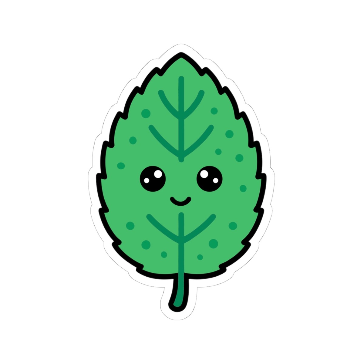 Design appeal: Features a kawaii-style mint leaf with delicate veins, a bright green hue, big sparkling eyes, and a sweet grin, radiating pure freshness and cheerful energy.