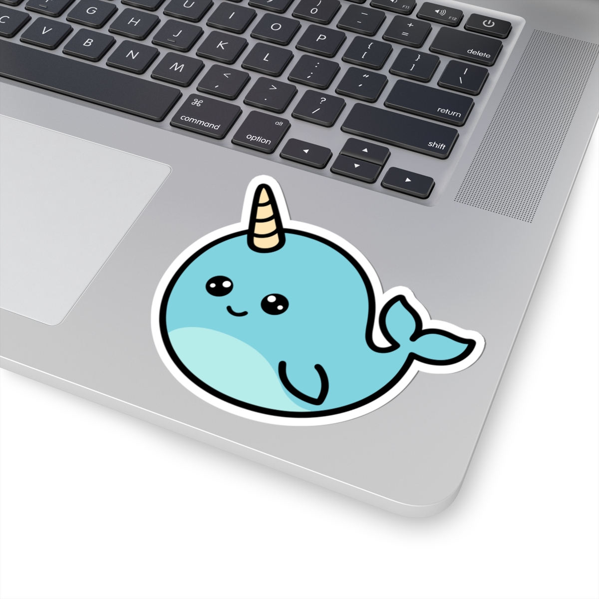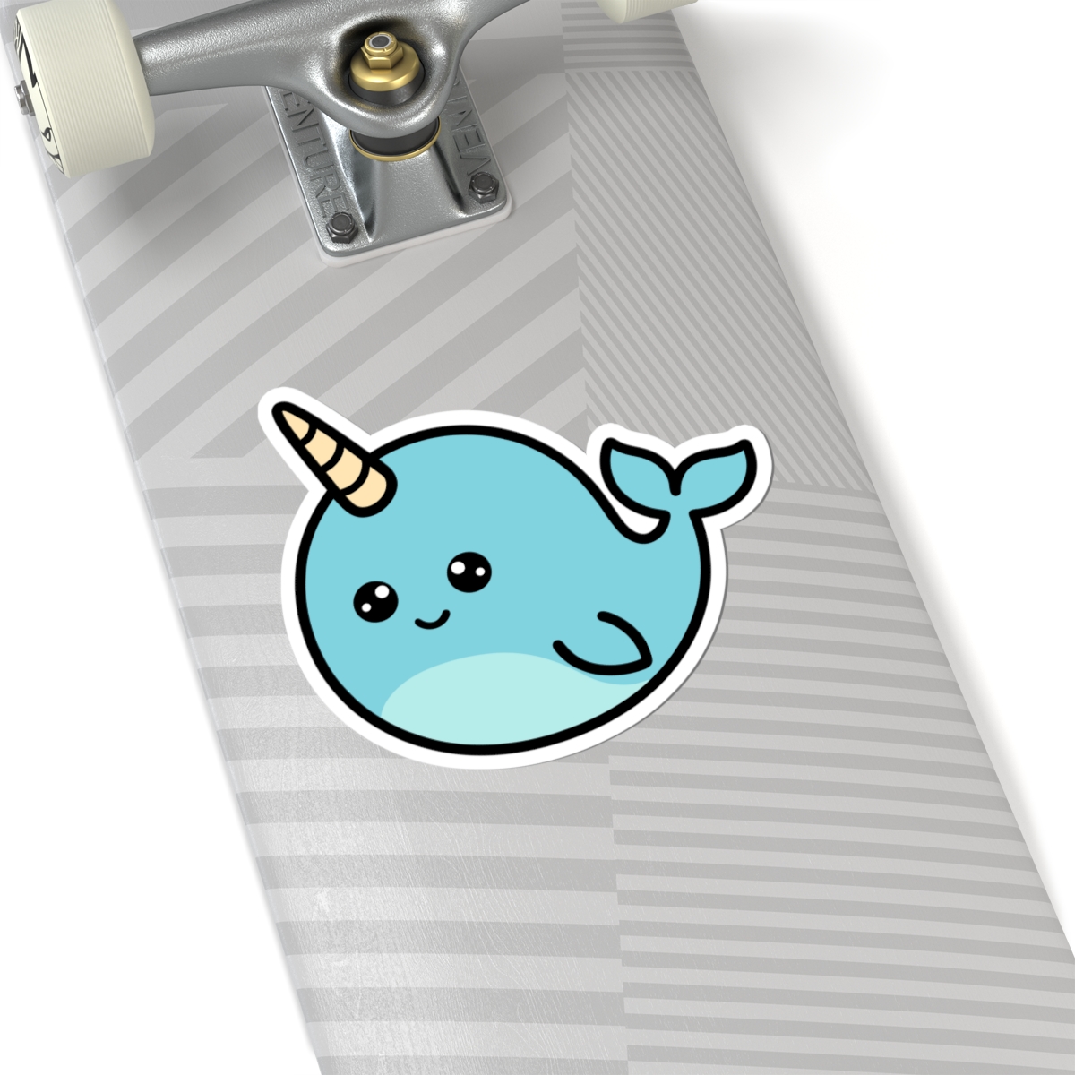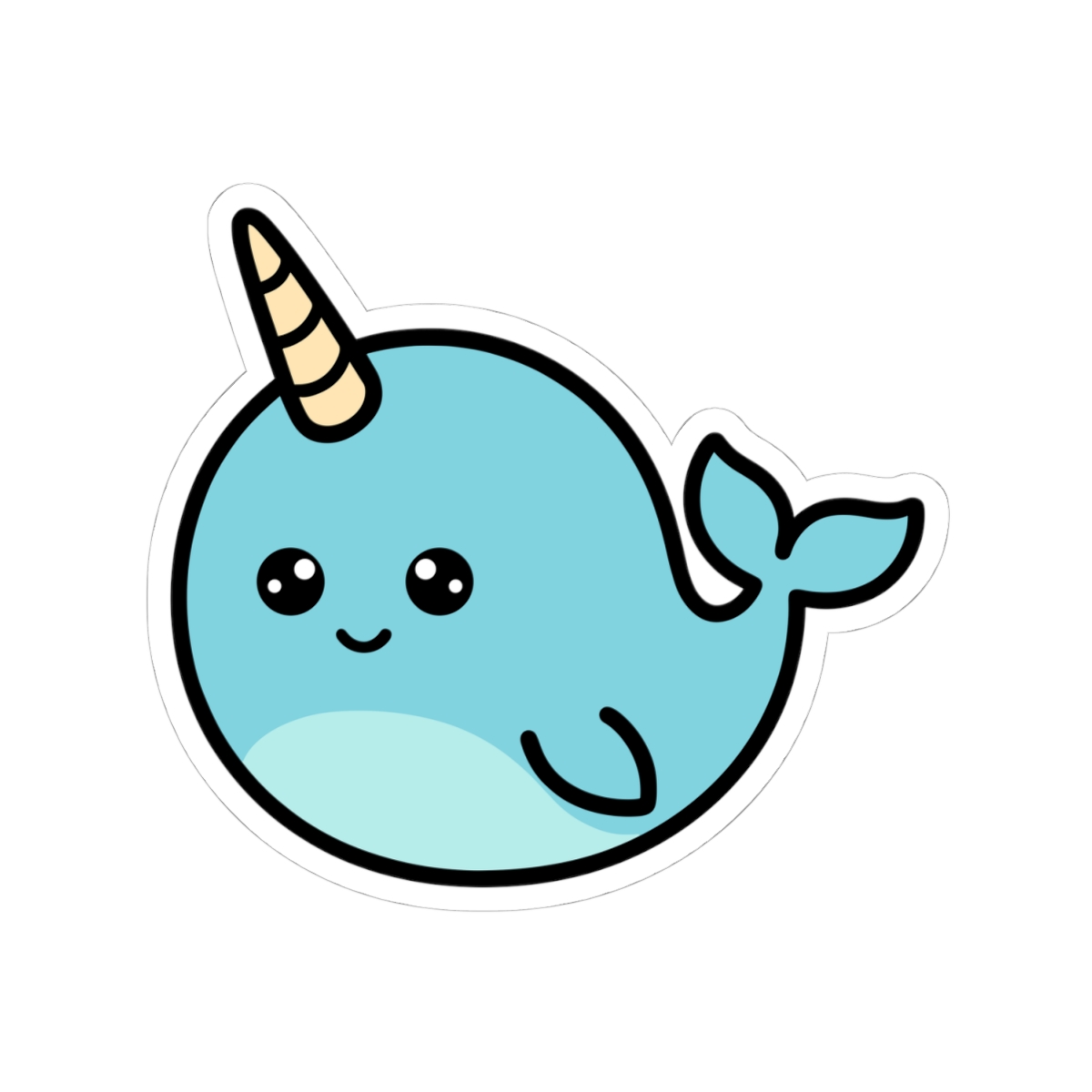 Design Appeal – Featuring a plump, smiling blue narwhal with a gently curved horn and bright, sparkly eyes, this kawaii sea unicorn brings instant joy to any surface.