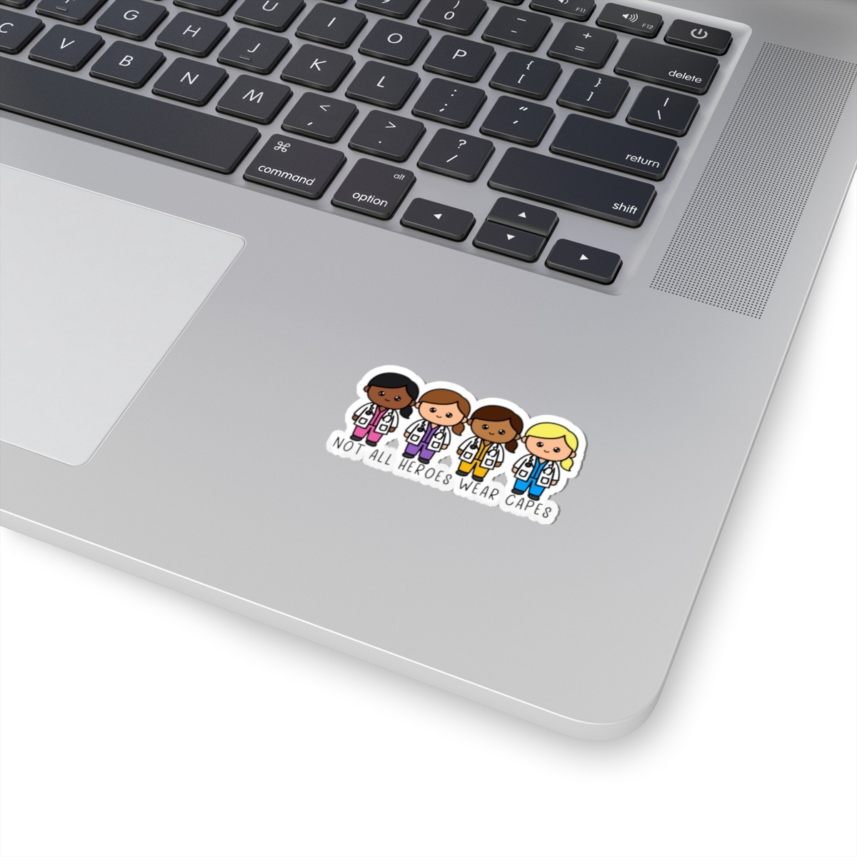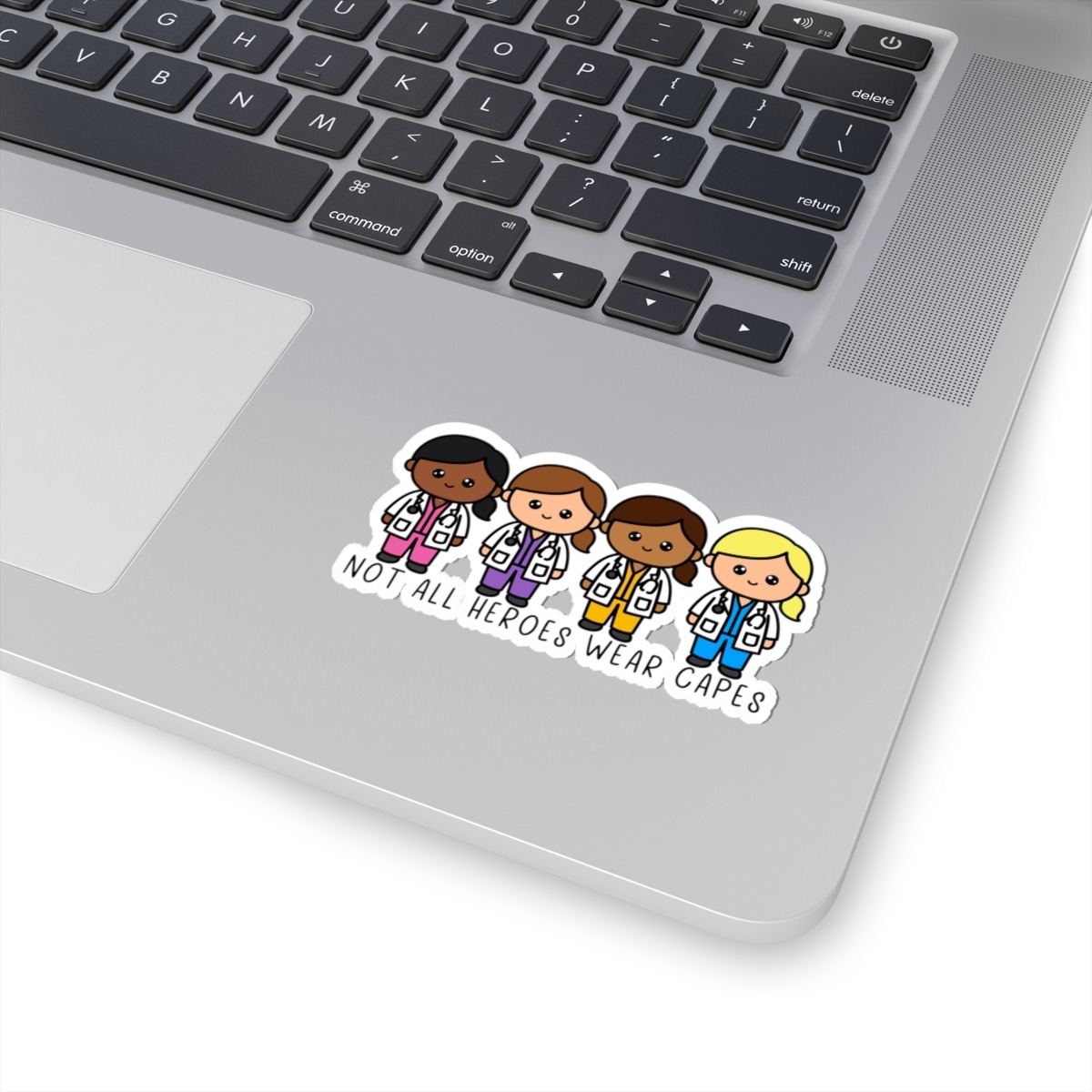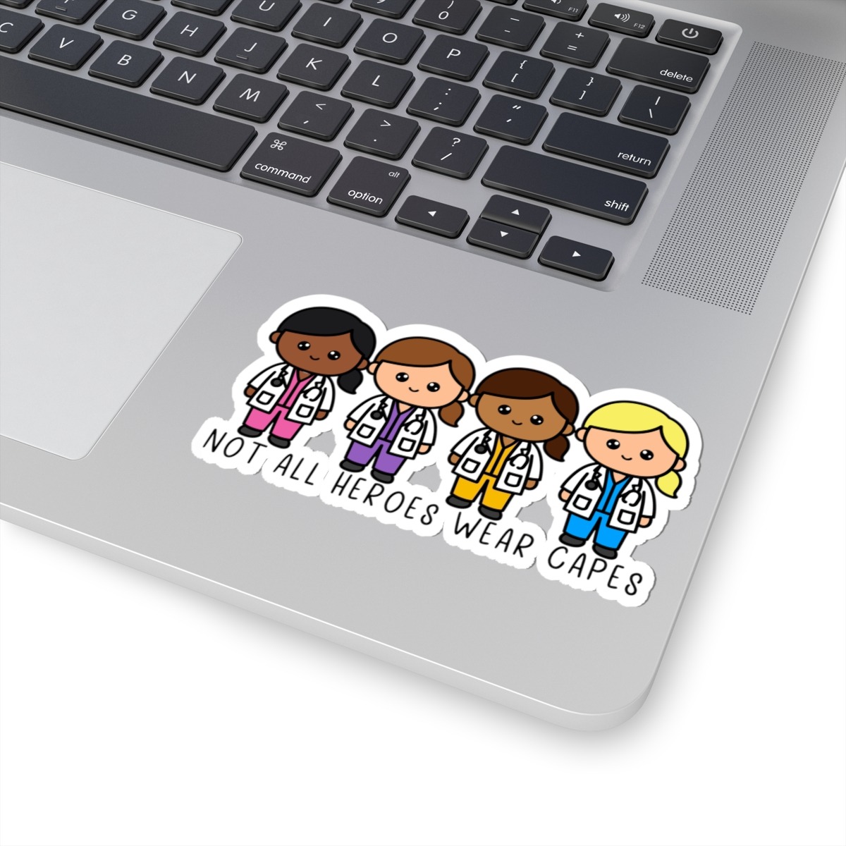 Celebrate the everyday heroes who wear scrubs and make a difference with this uplifting sticker! Whether it’s on your laptop, notebook, or journal, this design is sure to bring a smile to your face.