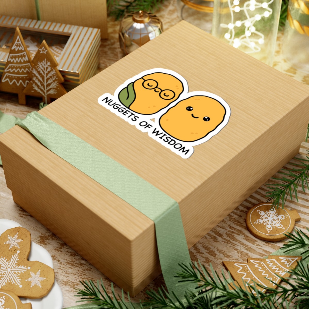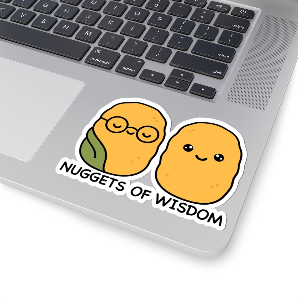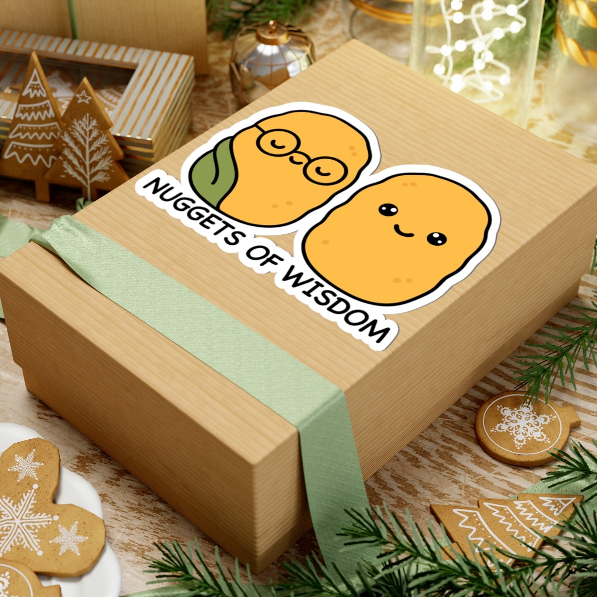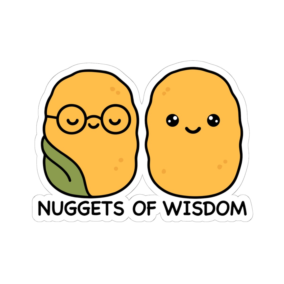 Snack-sized sages – Features two adorable chicken nuggets with tiny glasses, serene expressions, and sparkles of genius.