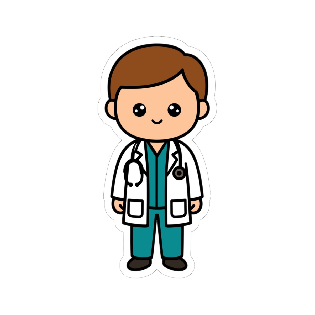 Design appeal: Features a kawaii-style healthcare worker wearing a crisp white lab coat over colorful scrubs, complete with a stethoscope draped around the neck, big sparkling eyes, and a confident, kind smile — radiating pure care and dedication in the cutest way.