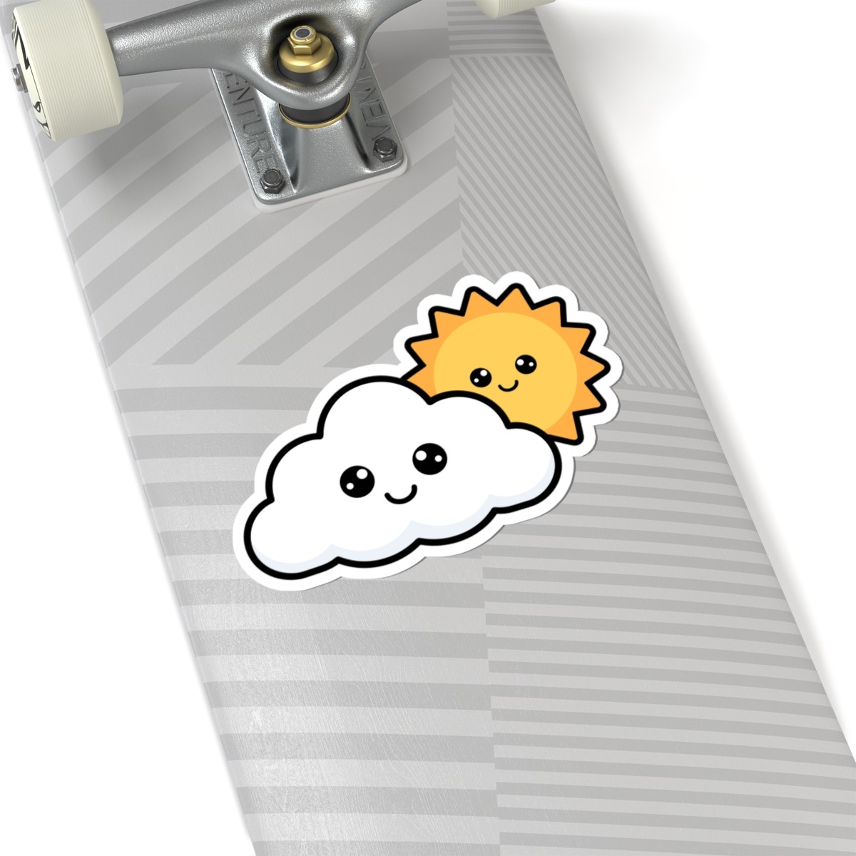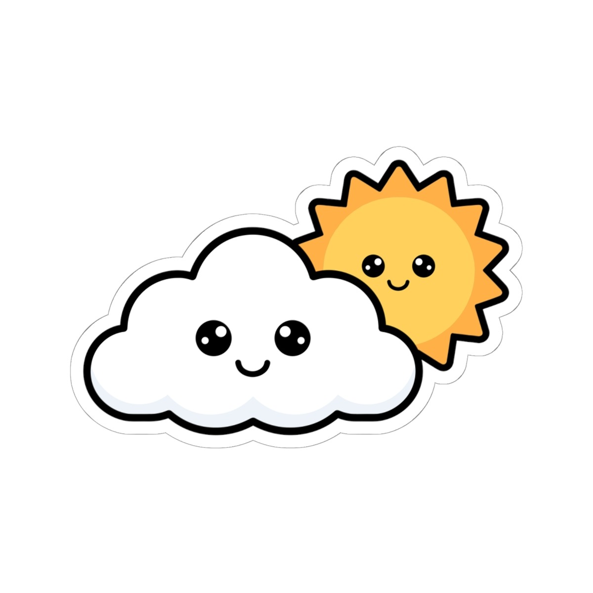 Design Appeal – Featuring a bright, smiling sun peeking out from behind a fluffy white cloud, this kawaii scene radiates gentle optimism and cozy sky vibes.