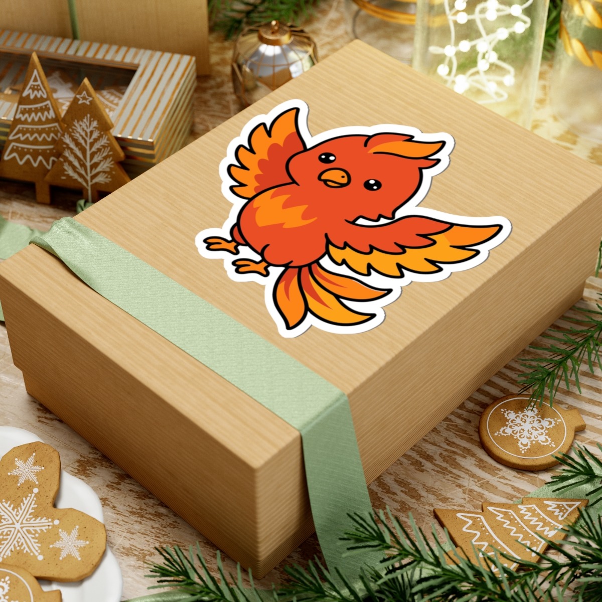 Mythical and magical – Features a vibrant phoenix with glowing orange and red feathers, outstretched wings, and a fiery tail that’s more adorable than intimidating.