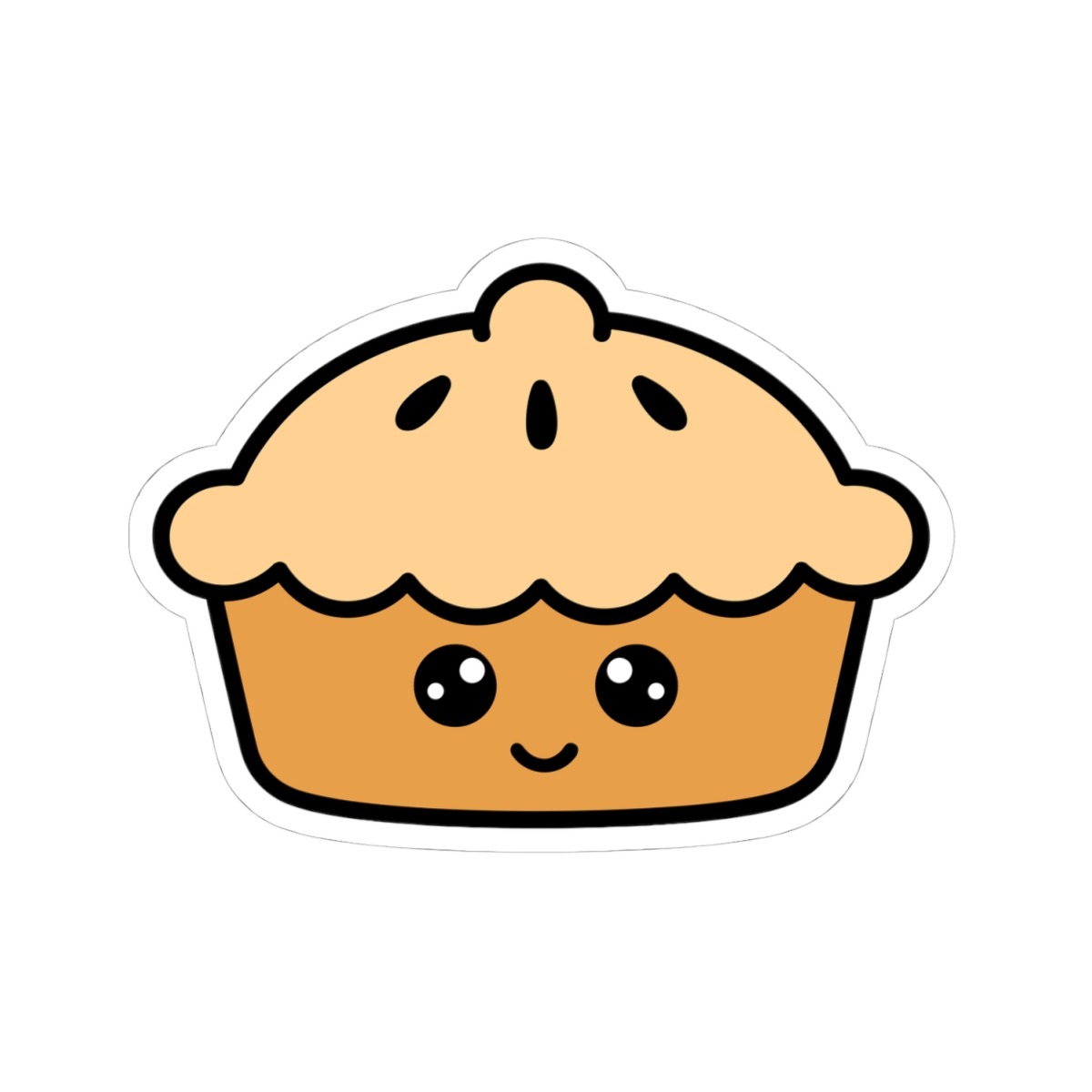 Deliciously adorable – Features a kawaii-style pie with a golden-brown crust, tiny crimped edges, and a happy little smile.